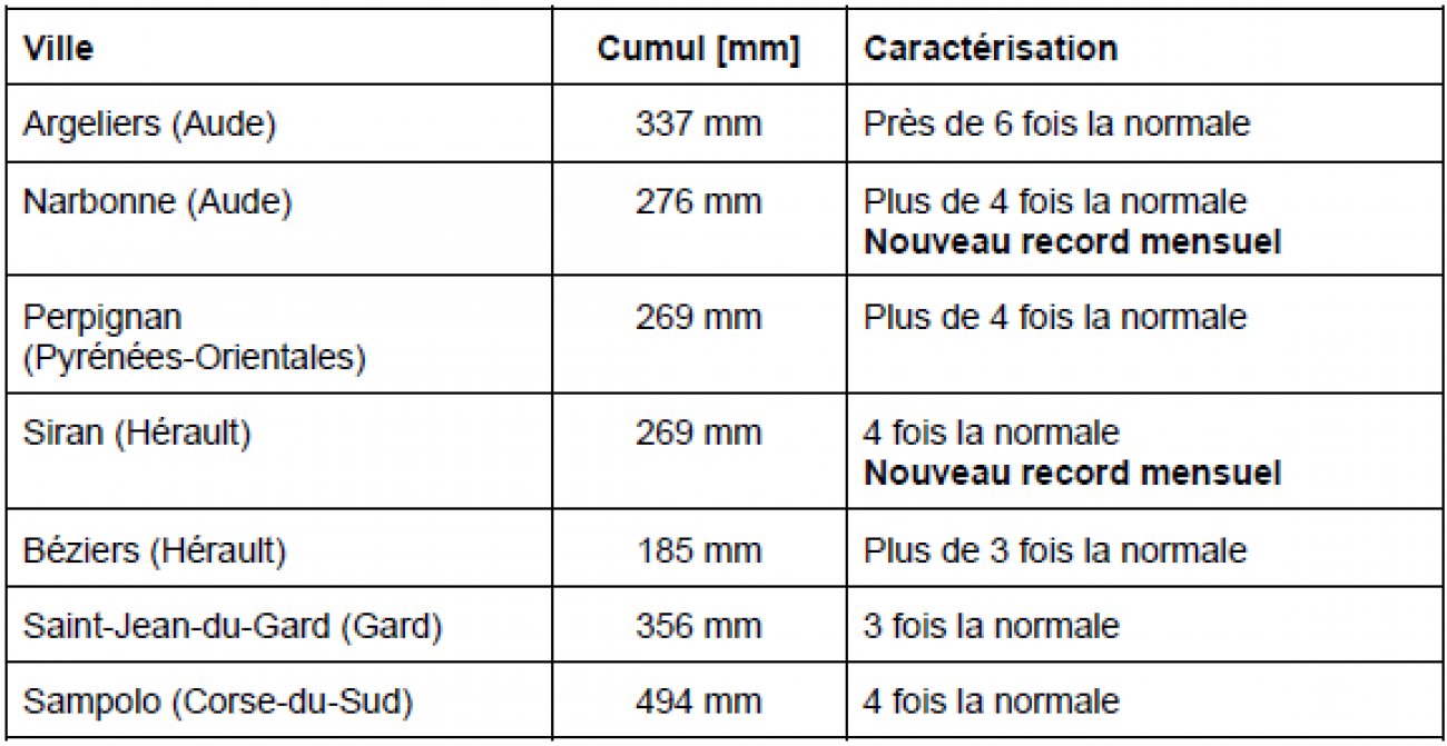le début des mesures en 1959), le Roussillon (l’Aude connaît son mois de