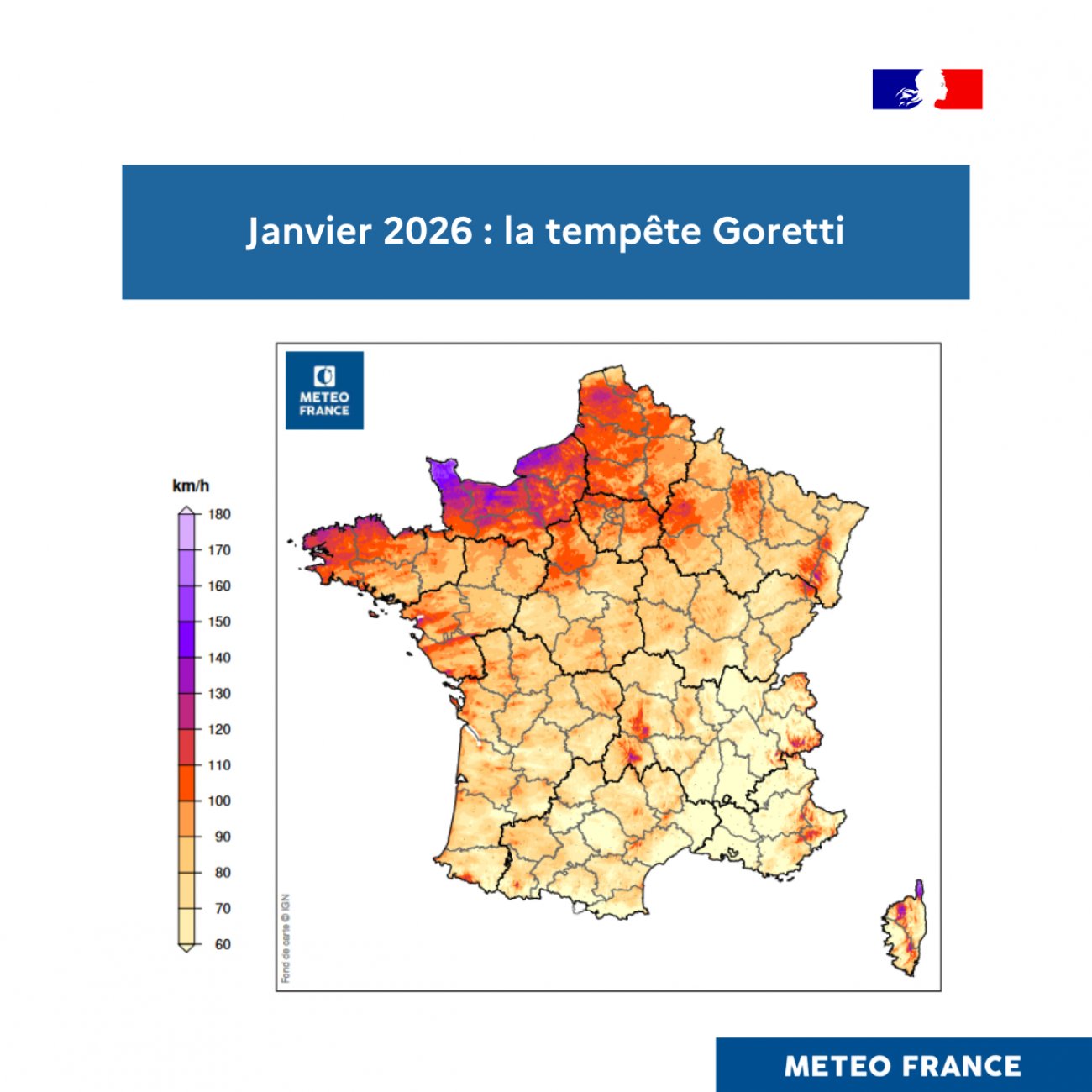 au 9 janvier, la tempête Goretti a frappé un large quart nord-ouest du