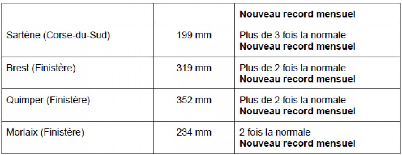 • il a plu abondamment sur la Bretagne et près de la Méditerranée, provoquant localement des crues et des inondations ;