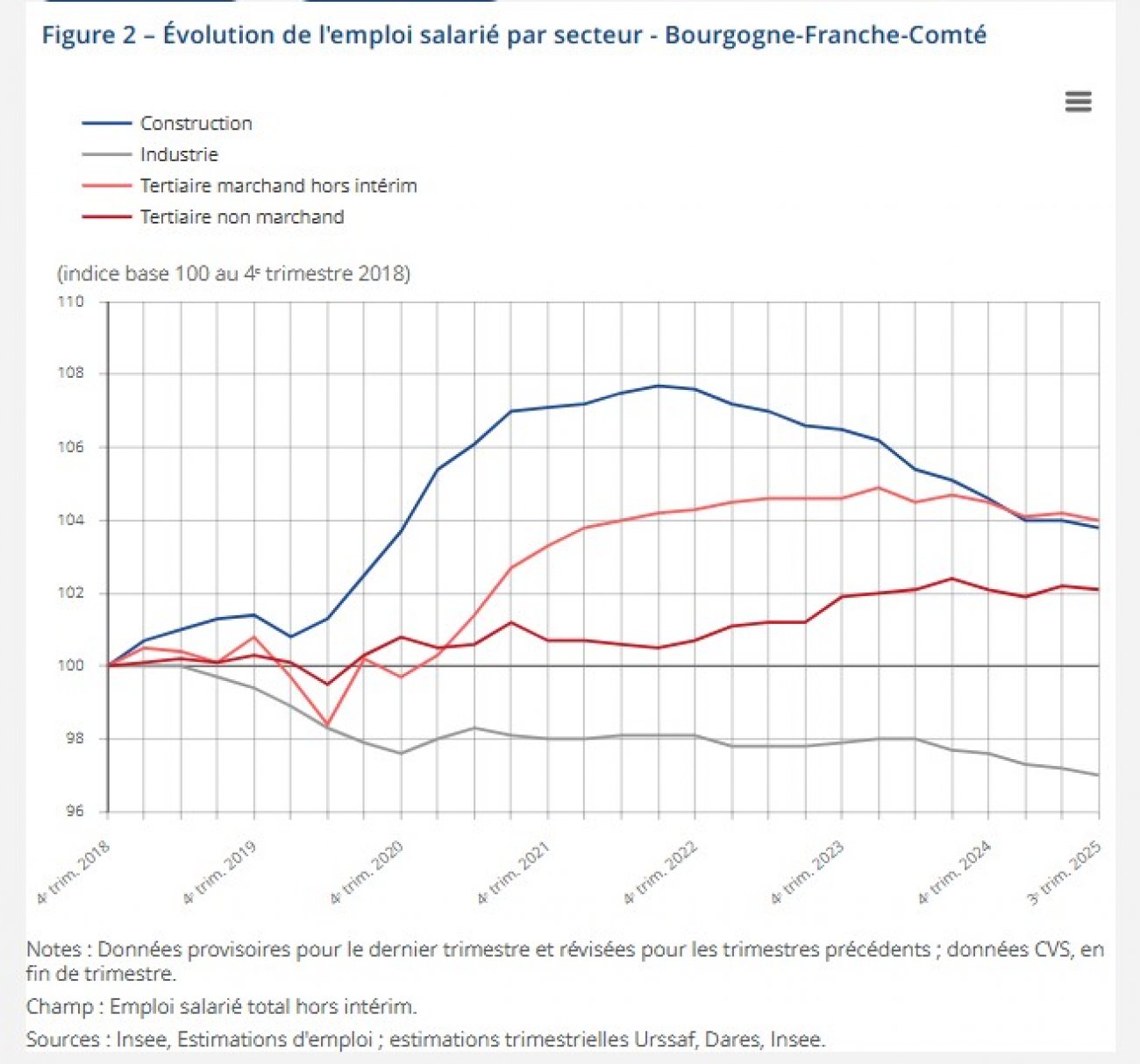 Au 3e trimestre 2025, l’emploi salarié continue de baisser en Bourgogne-Franche-Comté