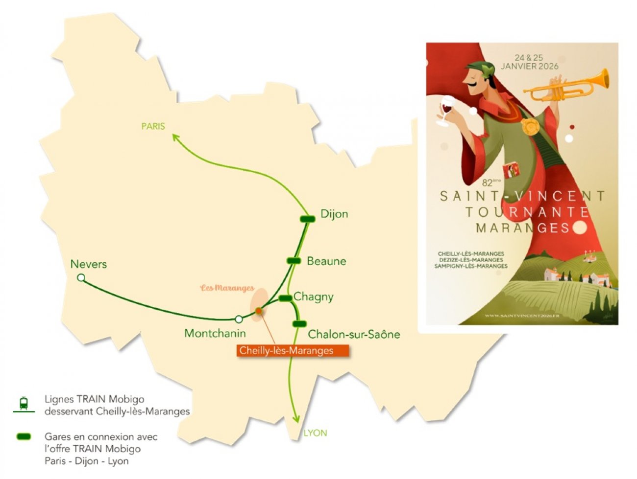 À l’occasion de la St-Vincent Tournante, qui se tiendra les 24 et 25 janvier, la Région Bourgogne-Franche-Comté et SNCF Voyageurs mettent en place un dispositif TRAIN Mobigo exceptionnel afin de faciliter l’accès à l’événement et accompagner les flux de voyageurs dans les meilleures conditions.