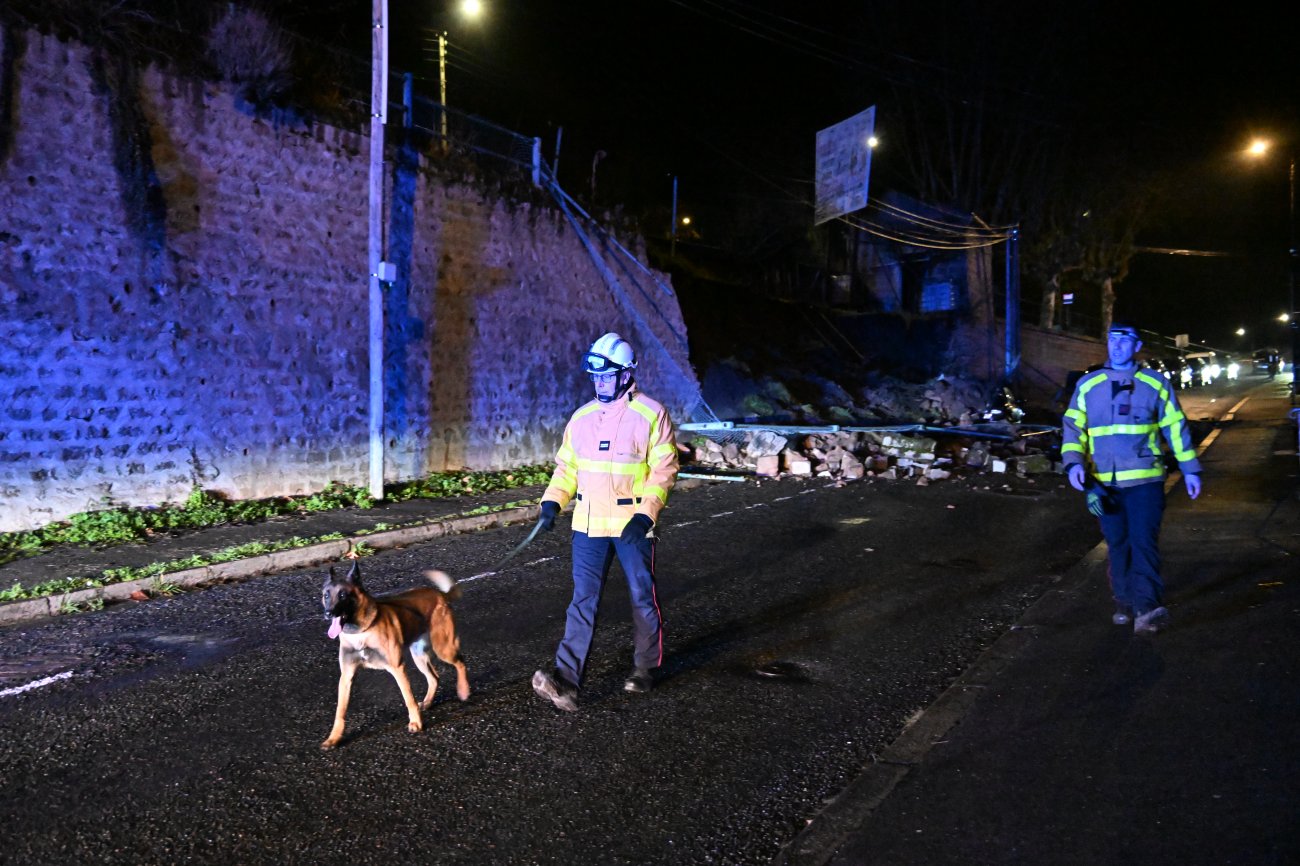 Les pompiers du Creusot ont été dépêchés sur place, sous le commandement du Lieutenant Sylvain Bijard. Pour s’assurer qu’il n’y avait personne sous le mur, deux équipages sont venus de Chalon sur Saône et Tournus, avec des chiens. Le Lieutenant Lionel Despouy a vite été rassuré. Il n’y avait personne sous les pierres. «On a de la chance, à cette heure de la nuit; il y avait peu de chance qu’il y ait un ou des piétons. Mais il fallait s’en assurer», indique le Lieutenant Sylvain Bijard.