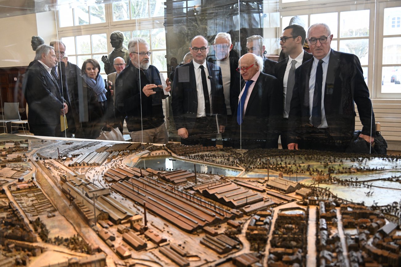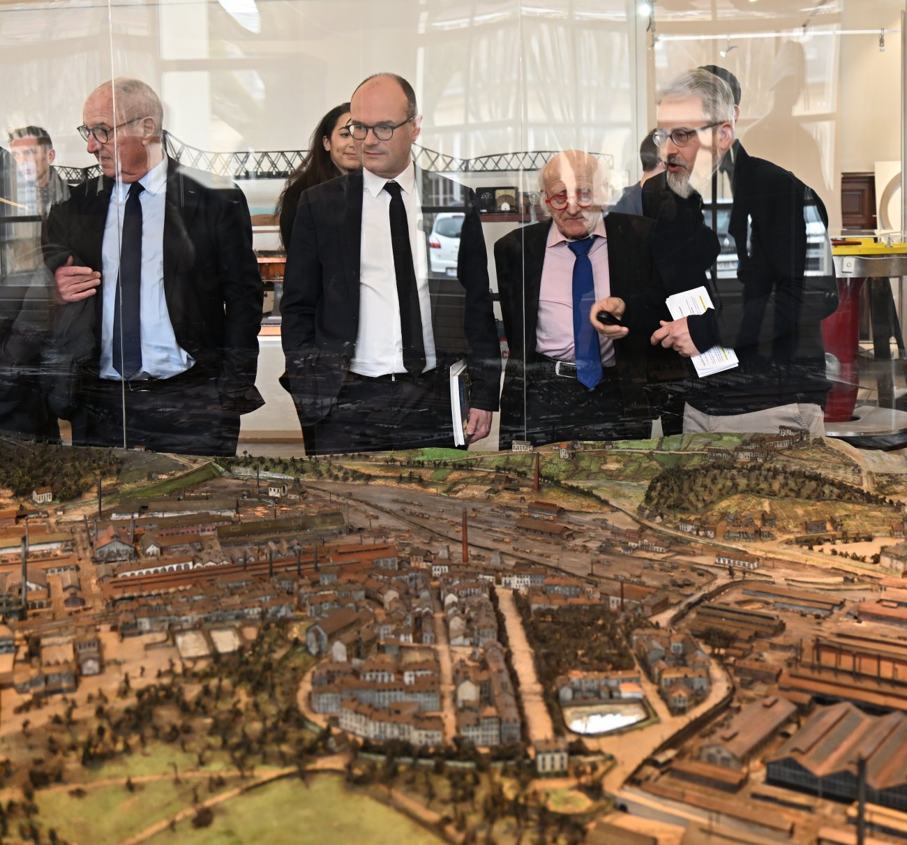 Là même où le Ministre a passé beaucoup de temps à contempler le plan du Creusot en relief, du temps des Schneider, aux côtés de David Marti, maire du Creusot et Président de la Communauté Urbaine, Paulette Matray, sénatrice de Saône-et-Loire, Amelle Deschamps, 1ère vice-présidente du Consel départemental, Dominique Juillot, président du Grand Chalon, Jean-Claude Lagrange, conseiller régional, Pascal Gautheron, président de la CCI Métropole Bourgogne, Clarisse Maillet, présidente de la CPME, Isabelle Laugerette, secrétaire générale de l’UIMM…