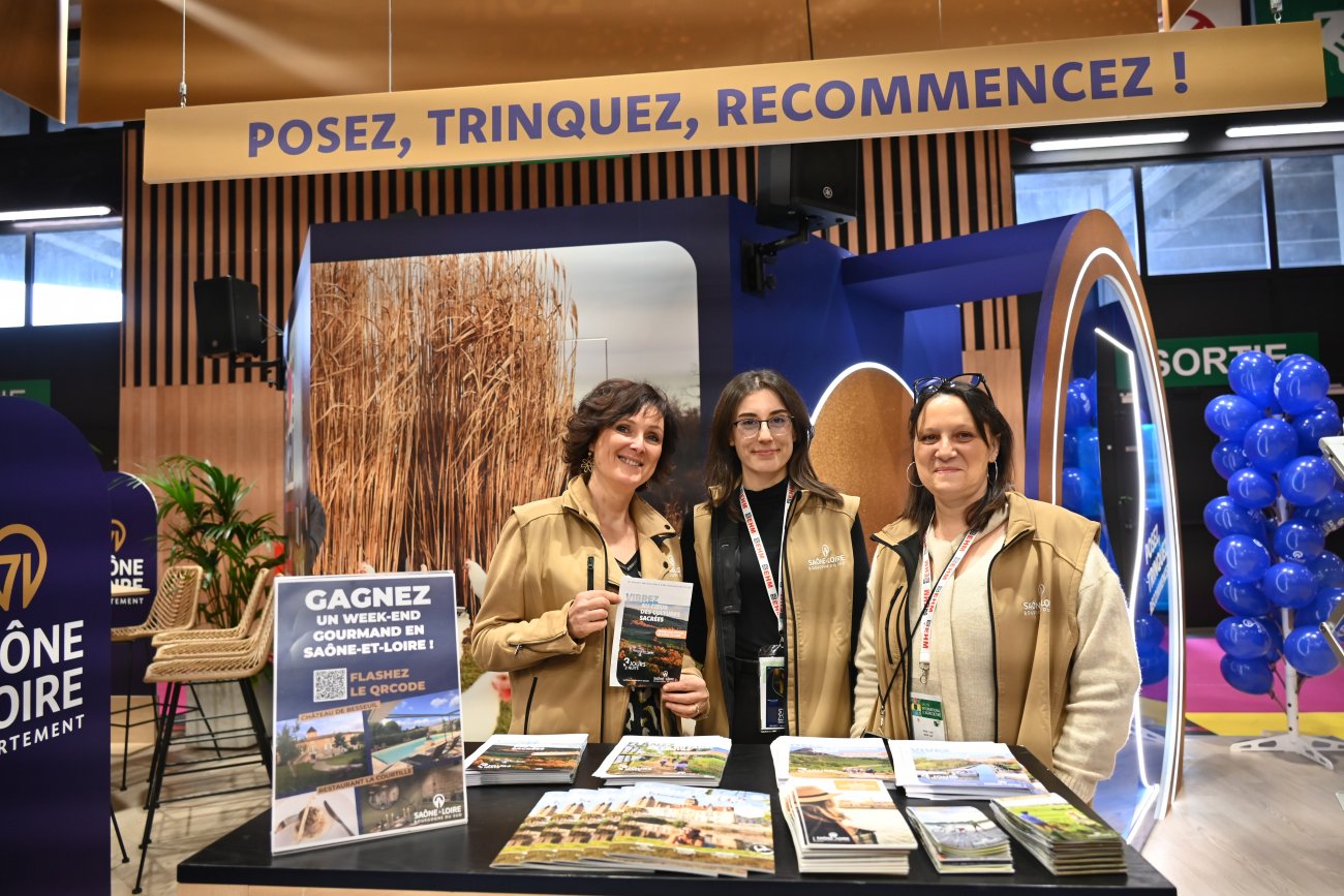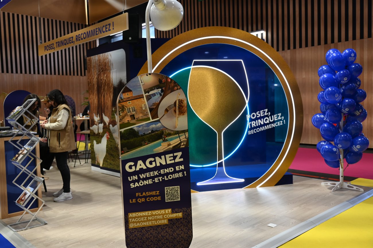 Un coup d’escalator et c’est sur la gauche, côté Bourgogne - Franche-Comté que l’on peut découvrir le double stand du département de Saône-et-Loire.