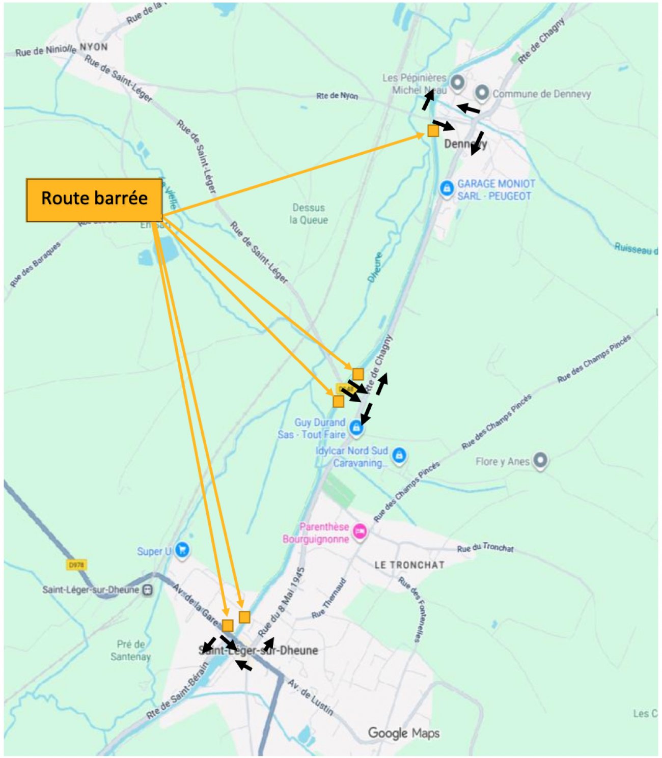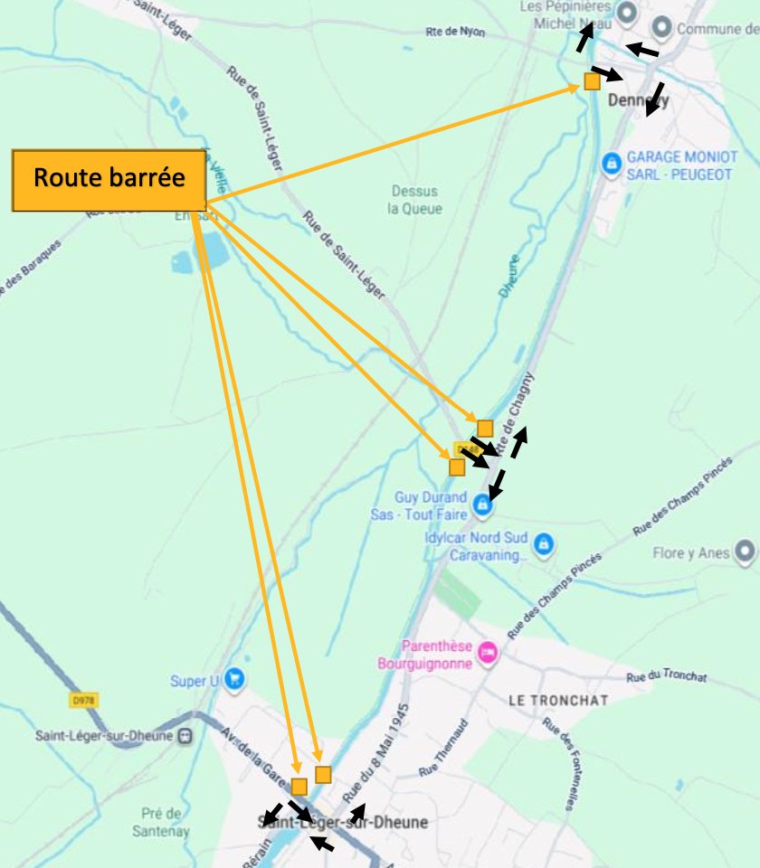 Une déviation de la voie verte n° 4 sera mise en place par les RD 974 dites Route de Saint-Léger et, Route de Chagny et Rue du 8 mai 1945, RD148, RD978 par les voies communales dite Route de Nyon, Place du Cap Giraud et Rue du Port et ce, pour les deux sens de circulation.