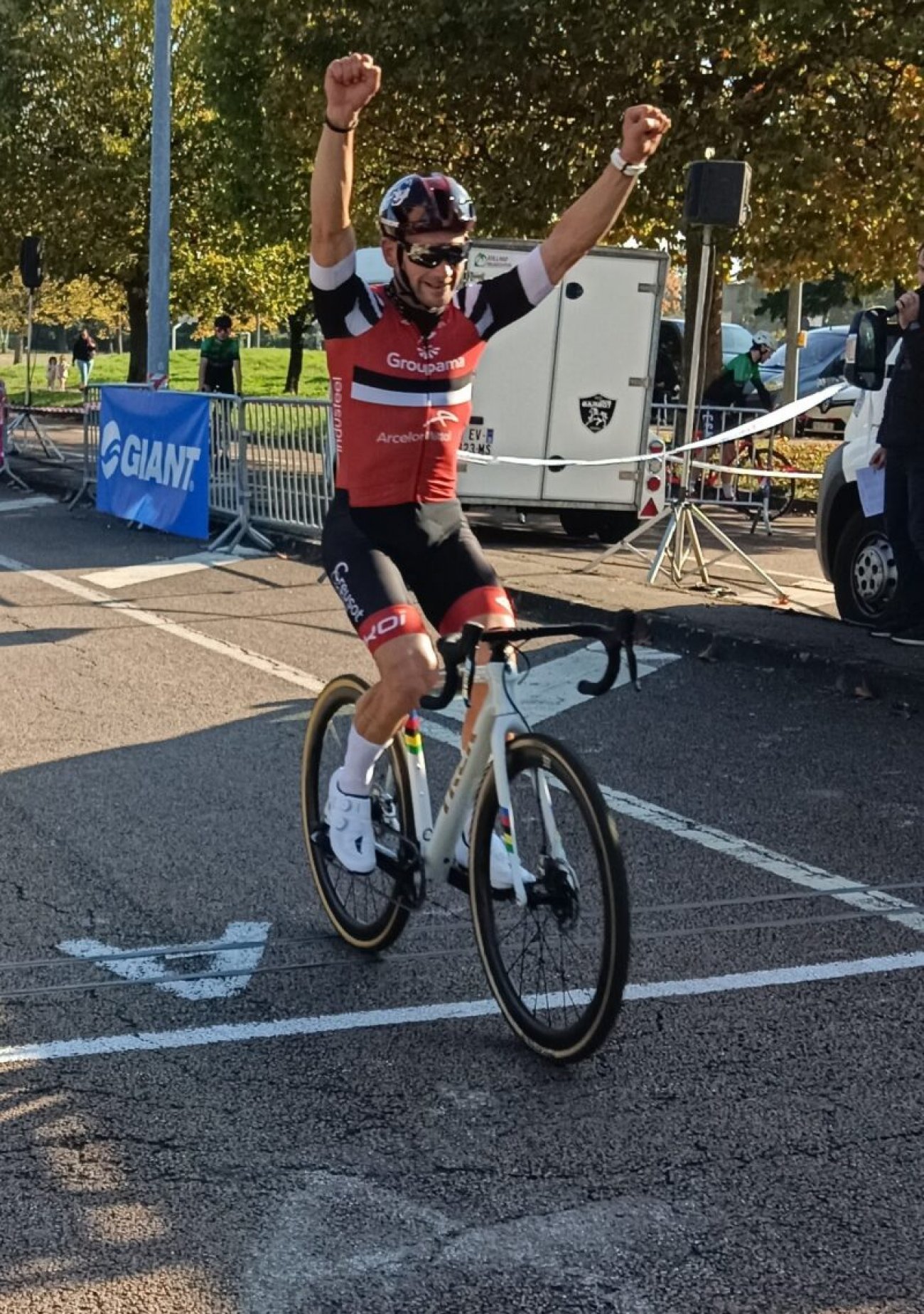 À l’entame du dernier tour, Mathieu Perroux peut encore jouer la victoire, à une dizaine de secondes du premier mais crève à 2 km de l’arrivée, loin du stand et perd une place pour terminer 3e au scratch et 1er Espoir.