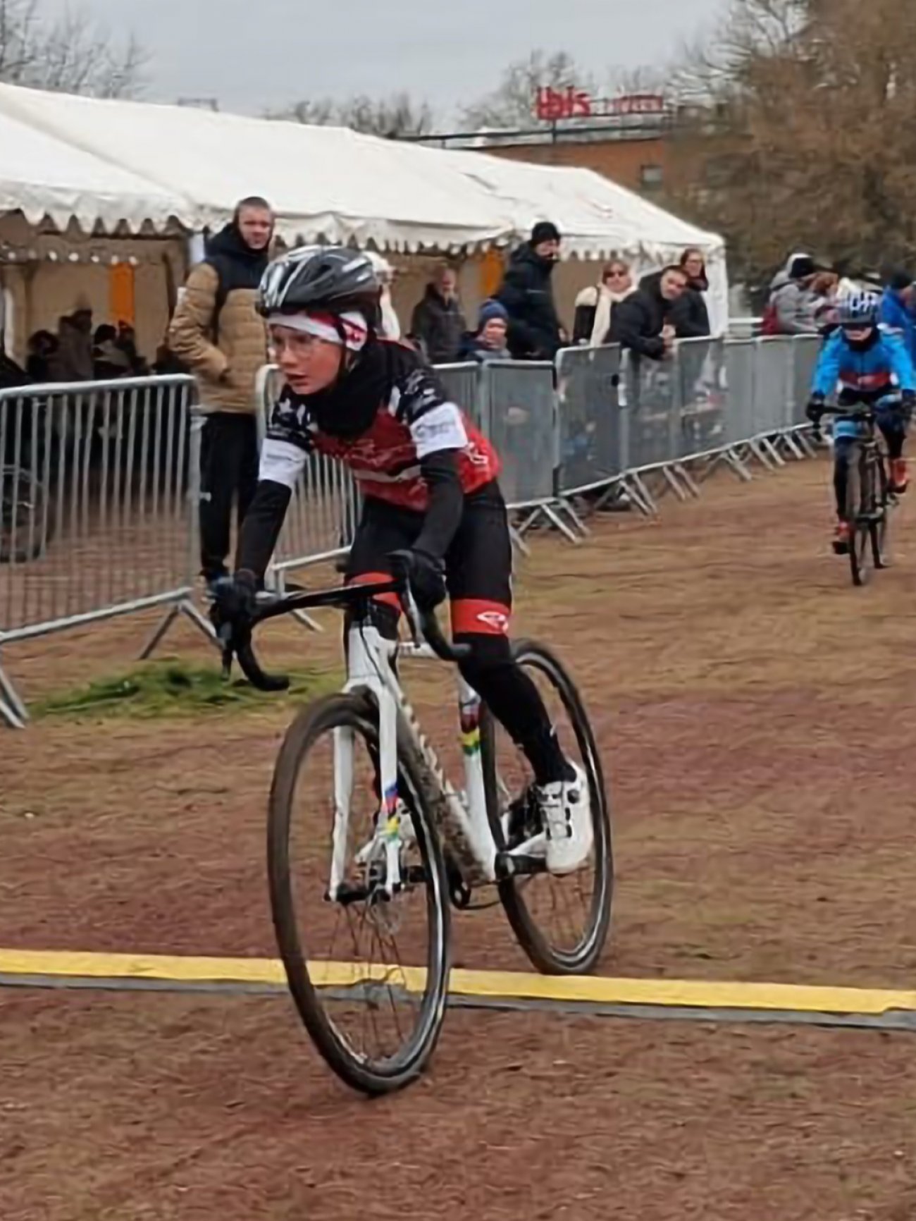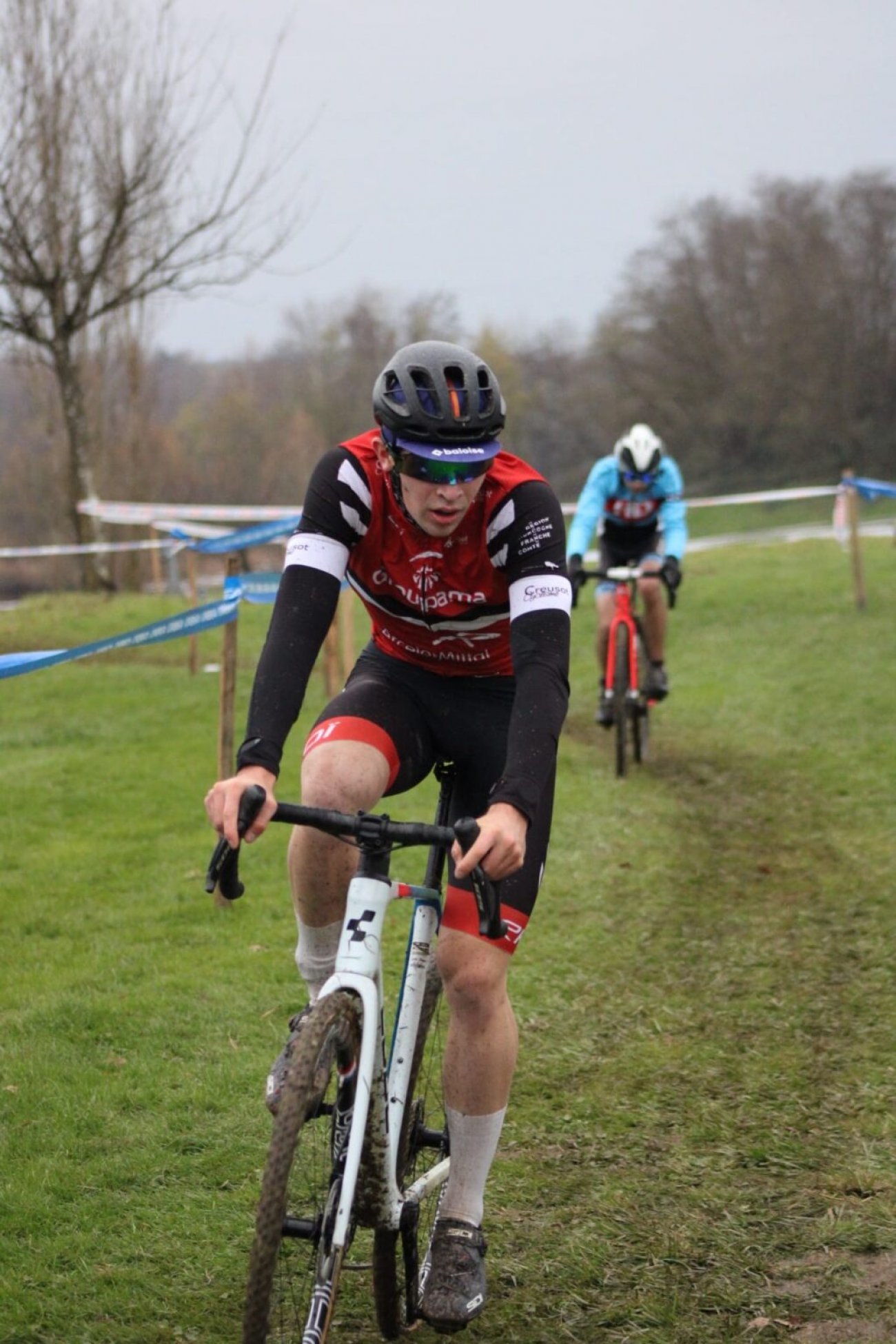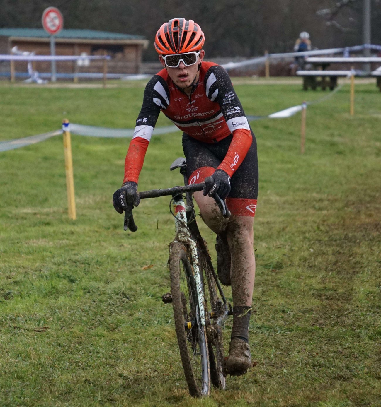 Hugo était engagé au Cyclo-cross d'Ornans dans le Doubs, le dégel de fin de matinée a rendu le circuit très boueux et très glissant.