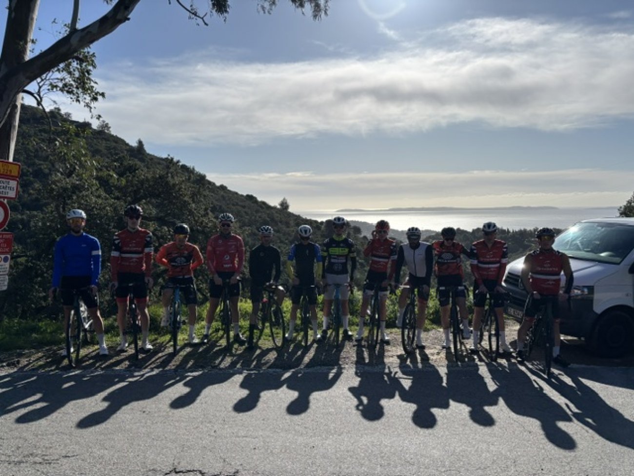 C'est mercredi matin aux aurores qu'une partie de l'équipe 1ère s'est retrouvée au siège du club afin de charger tous les matériels et équipements nécessaires à ce stage qui se déroulera sous l'autorité de Gary Grillot stagiaire DEJEPS. A 7H00 précises le convoi ( 3 véhicules ) prenait la direction du Var sous une pluie battante , mais dès le début de l'après midi, c'est sous le soleil varois que la 1ère sortie s'est tenue avec 75 km au programme, une façon de lancer ce stage avec du rythme, de la cohésion et de la bonne humeur.