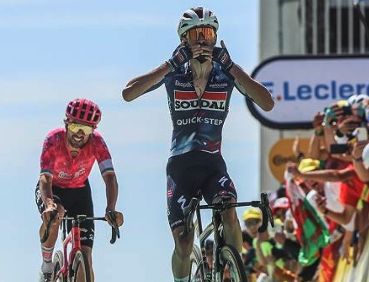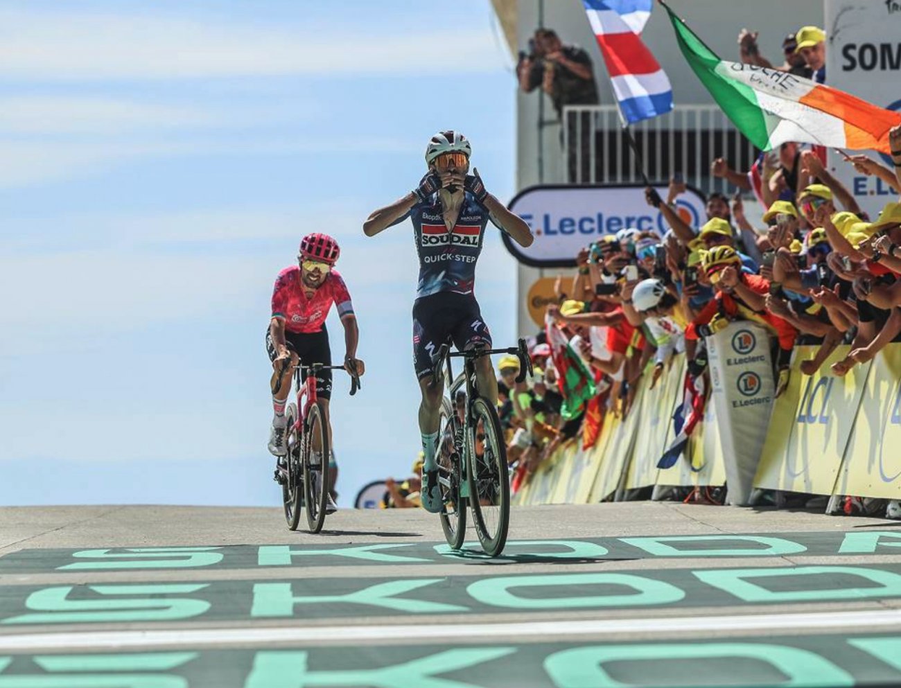 Déjà vainqueur sur le Giro en 2024 puis sur le Tour of Oman en 2025, le coureur de Soudal-Quick Step a dû surpasser Healy dans un duel de 50 derniers mètres pour apporter au clan français son premier succès sur cette édition du Tour. Juste derrière, Jonas Vingegaard et Tadej Pogacar ont passé les 8,5 derniers kilomètres d’ascension à s’asticoter en duo… mais se sont finalement neutralisés.
