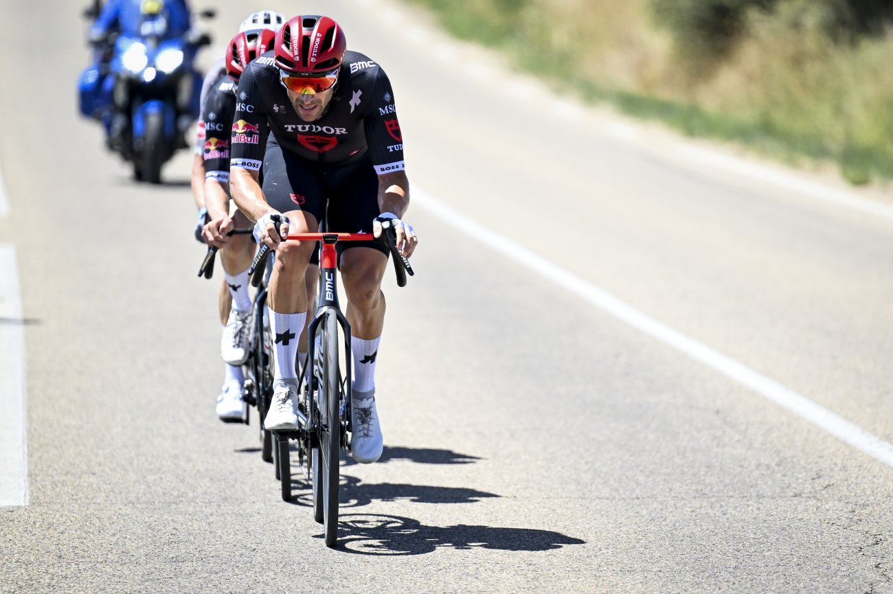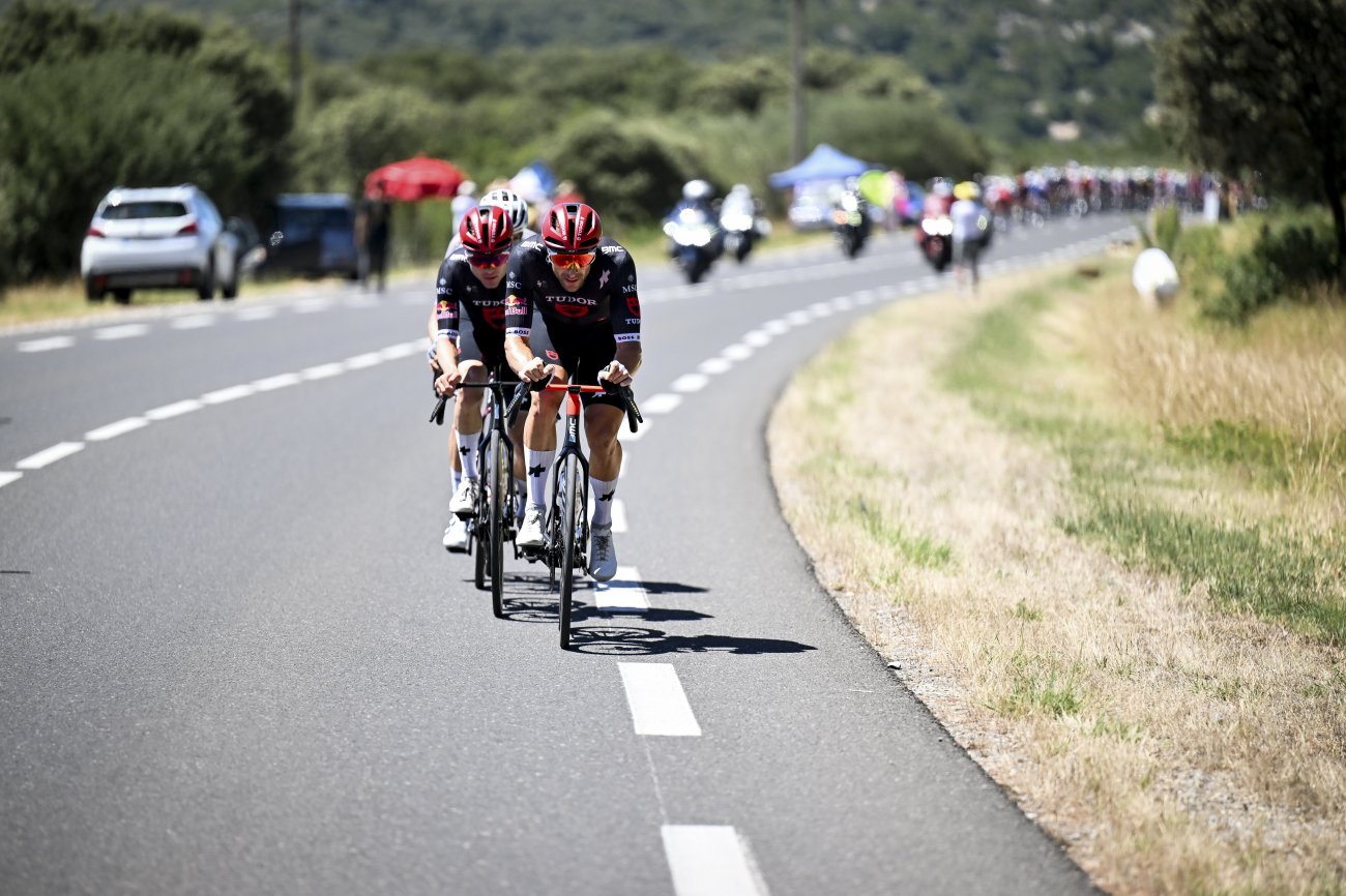 Au total, ils sont 28 coureurs à l’avant, avec Sivakov, Soler (UAE Team Emirates-XRG), Benoot, Campenaerts (Visma-Lease a Bike), Arensman (Inos Grenadiers), V.Paret-Peintre, Eenkhoorn, Van Wilder (Soudal Quick-Step), Healy (EF Education-EasyPost), Buitrago, Wright (Bahrain-Victorious), Barré (Intermarché-Wanty), Van Dijke (Red Bull-Bora-Hansgrohe), Skujins (Lidl-Trek), Russo (Groupam-FDJ), Meurisse (Alpecin-Deceuninck), Alaphilippe, Haller, Hirschi, Trentin (Tudor), Costiou, Garcia Pierna (Arkéa-B&B), Mas, Barta, Muhlberger (Movistar), Aranburu (Cofidis), Champoussin, Velasco (XDS Astana), Burgaudeau (TotalEnergies), Bittner (Picnic PostNL), Woods, Neilandts (Israel Premier Tech), Drizners, Van Moer (Lotto), Abrahamsen et Leknessund (Uno-X).