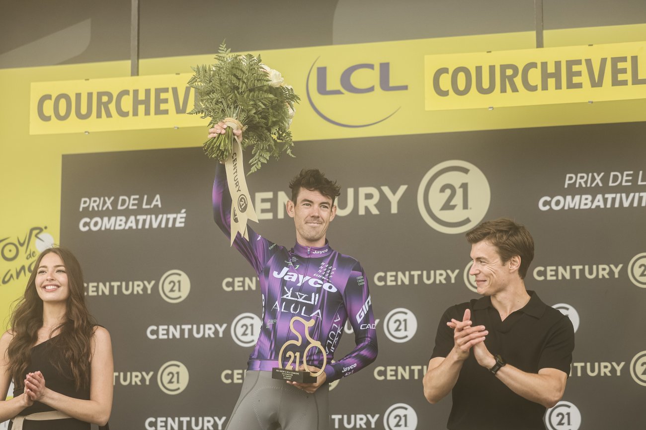 Ben O’Connor connaît justement la recette qu’il a déjà concoctée sur le Giro en 2020, sur la Vuelta en 2024, et surtout sur une étape du Tour 2021 où il était passé tout près de déshabiller Tadej Pogacar du Maillot Jaune en plus de s’imposer sur l’étape de Tignes. Une fois encore, il s’est lancé dans un long raid solitaire, de 15,5 kilomètres, après avoir déposé le Colombien Einer Rubio, son dernier partenaire de route avant de s’envoler vers le col de la Loze, en surplomb de la station de Courchevel.