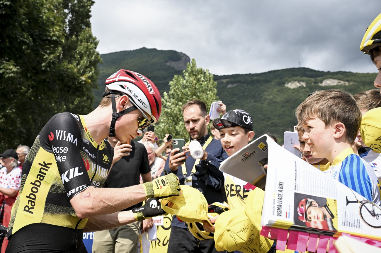 Mais leur avance de 2’30’’ fond avec la montée en régime des Visma-Lease a Bike, qui prépare un coup de force en deux temps, par Sepp Kuss (à 5,5 km du sommet) puis Vingegaard (à 5 km). L’essorage est radical puisqu’il ne reste plus Pogacar dans la roue du Danois, Florian Lipowitz ayant rapidement lâché prise. Le duo de tête du classement général rejoint le reste de l’échappée à 4 km du col de la Madeleine et termine l’ascension avec cet entourage. Vingegaard bascule en tête devant Pogacar.
