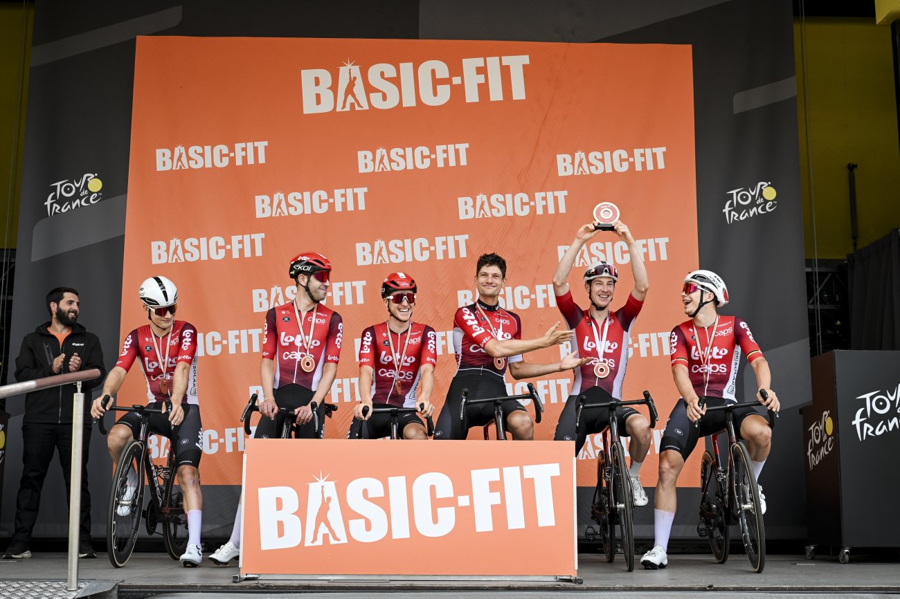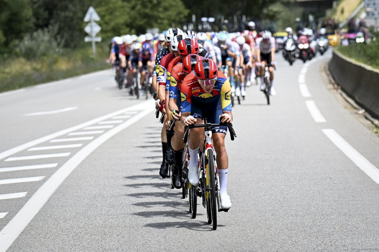 Après les forfaits de Carlos Rodriguez (Ineos Grenadiers) et Cyril Barthe (Groupama-FDJ), il reste 162 coureurs sur le Tour de France. La présence en nombre à l’avant du peloton des coureurs de Lidl-Trek passe le message très clair aux éventuels attaquants que le maillot vert s’intéresse fortement aux points du sprint intermédiaire positionné au km 23.