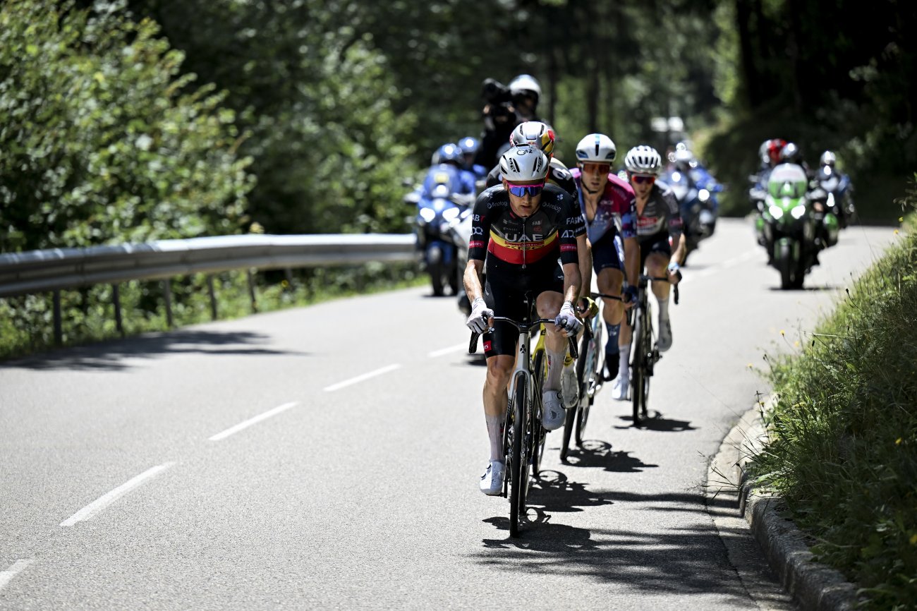 . En tête de course, Tim Wellens (UAE Team Emirates-XRG), Matteo Jorgenson (Visma-Lease a Bike), Lenny Martinez (Bahrain Victorious), Thymen Arensman (Ineos Grenadiers), Primoz Roglic (Red Bull-Bora-Hansgrohe), Ben O’Connor (Jayco AlUla), Raul Garcia Pierna (Arkéa-B&B Hotels), Will Barta, Gregor Muhlberger, Einer Rubio (Movistar), Felix Gall, Bruno Armirail (Decathlon AG2R La Mondiale), Michael Woods, Alexey Lutsenko (Israel Premier Tech)
