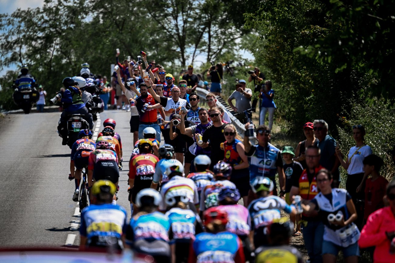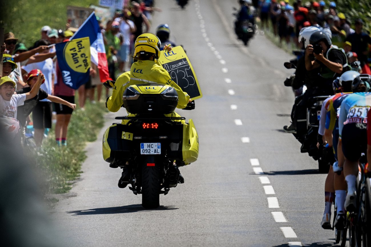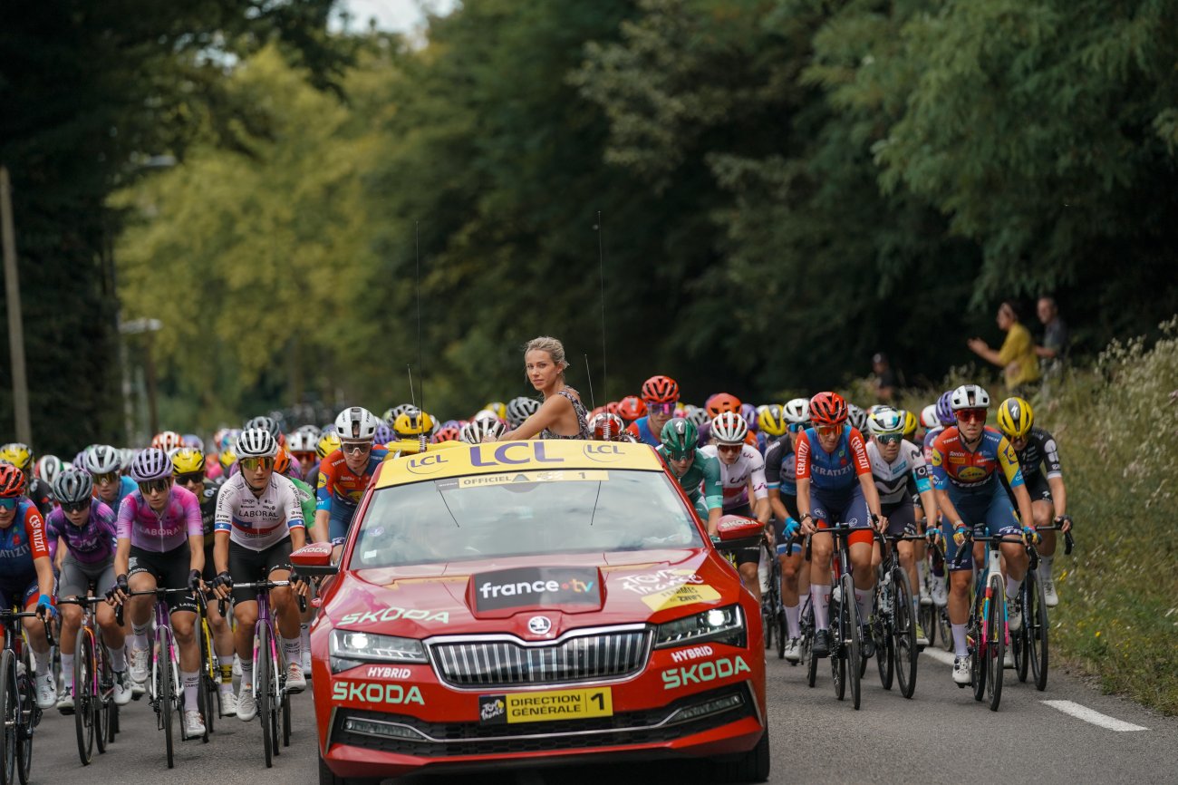 Toutes les coureuses arrivées la veille à Ambert prennent le départ de la 7e étape, donné à 13h37 de Bourg-en-Bresse. Sur son nuage au lendemain de sa première victoire sur le Tour, Maeva Squiban (UAE Team ADQ) est la première à s'échapper dans cette journée longue de 159,7 kilomètres en direction des Alpes et du massif de la Chartreuse. La Française est rejointe par Lucinda Brand (Lidl-Trek). Les deux femmes sont reprises. Avant de parvenir à se glisser dans une nouvelle échappée qui se forme au km 15 et totalise 17 coureuses. Ce groupe compte rapidement trois minutes d'avance.