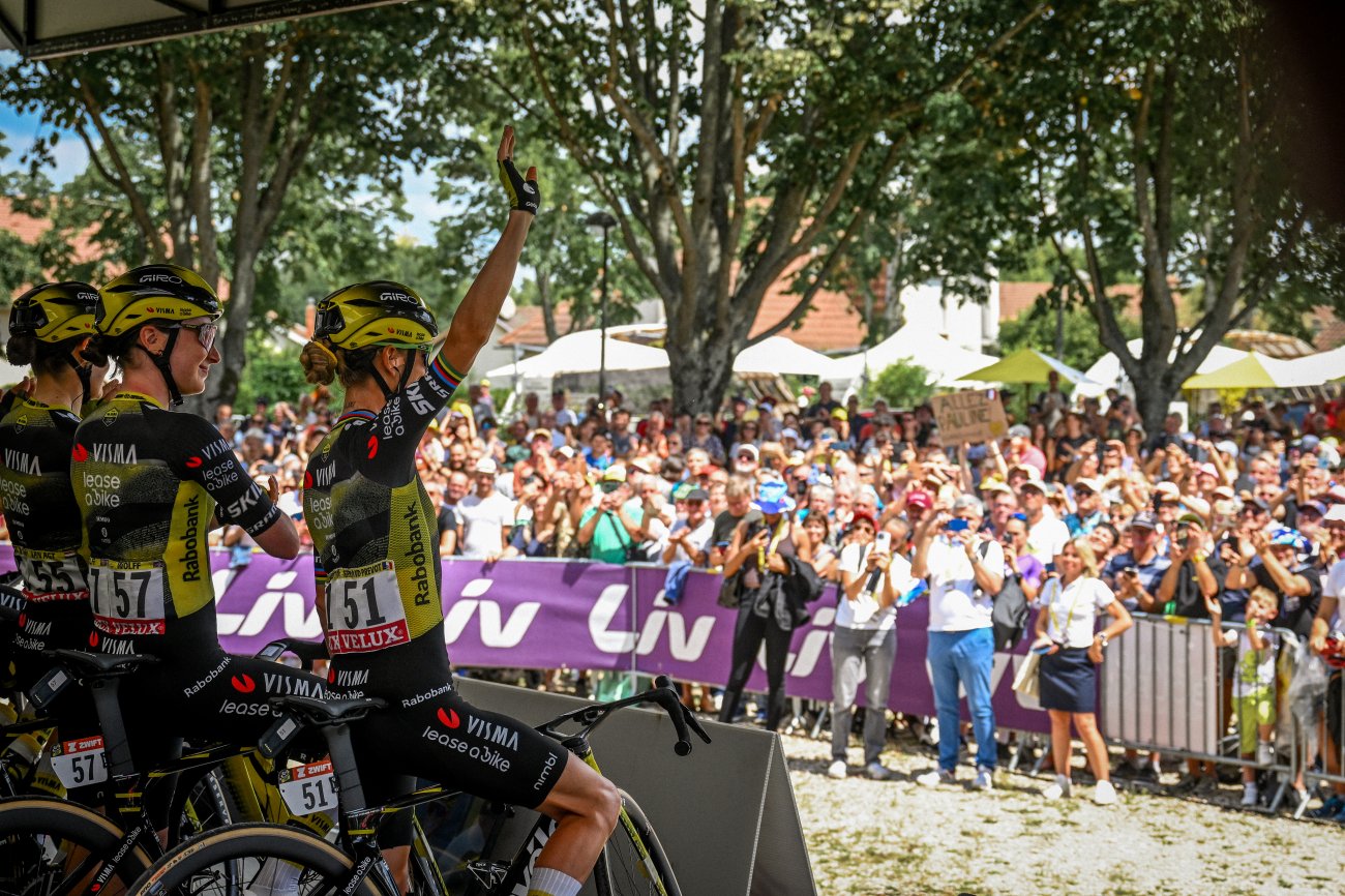 Squiban et Brand sont accompagnées de Chloe Dygert (Canyon//SRAM zondacrypto), Marie Le Net (FDJ-Suez), Mareille Meijering (Movistar), Shirin van Anrooij (Lidl-Trek), Justine Ghekiere (AG Insurance Soudal-Team), Megan Jastrab (Picnic PostNL), Susanne Andersen (Uno-X Mobility), Célia Le Mouel (Ceratizit), Ruth Edwards (Human Powered Health), Alicia Gonzalez (St Michel-Preference Home-Auber 93), Alice Arzuffi (Laboral Kutxa-Fundación Euskadi), Fiona Mangan (Winspace Orange Seal), Eline Jansen et Maud Rijnbeek (Volkerwessels) et de la championne du monde Lotte Kopecky (SD Worx-Protime). Non-représentée à l'avant, Fenix-Deceuninck assure l'essentiel de la poursuite.