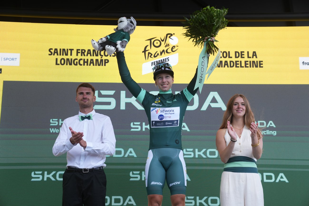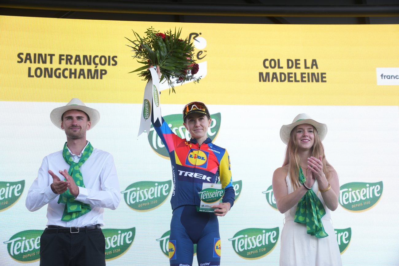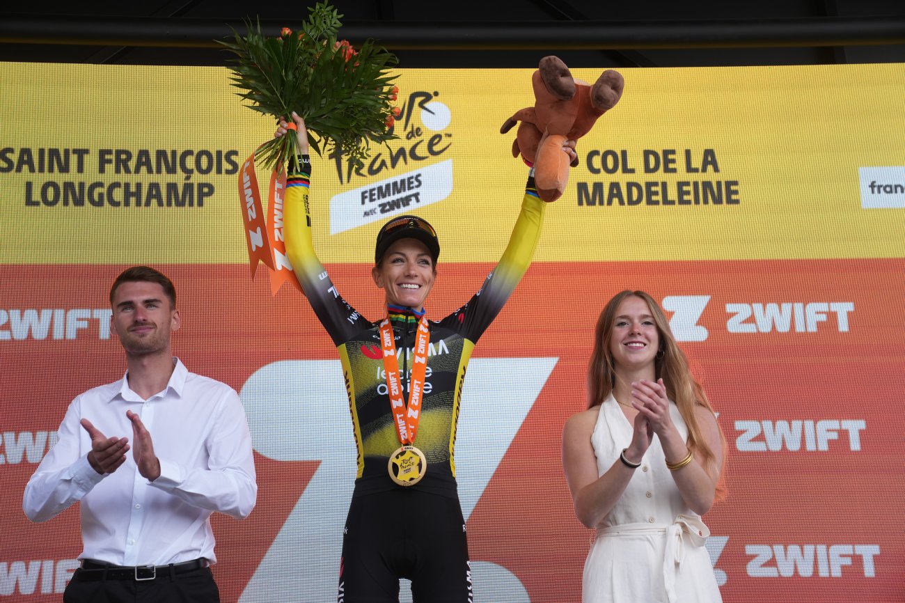 Si elle parvient à conserver le Maillot Jaune, dimanche à Châtel, elle deviendra la première Française à remporter le Tour depuis Jeannie Longo en 1989. Il s'agit aussi de la 3e victoire d'étape consécutive pour les tricolores après le doublé signé par Maeva Squiban (UAE Team ADQ), qui s'est une nouvelle fois glissée dans l'échappée.