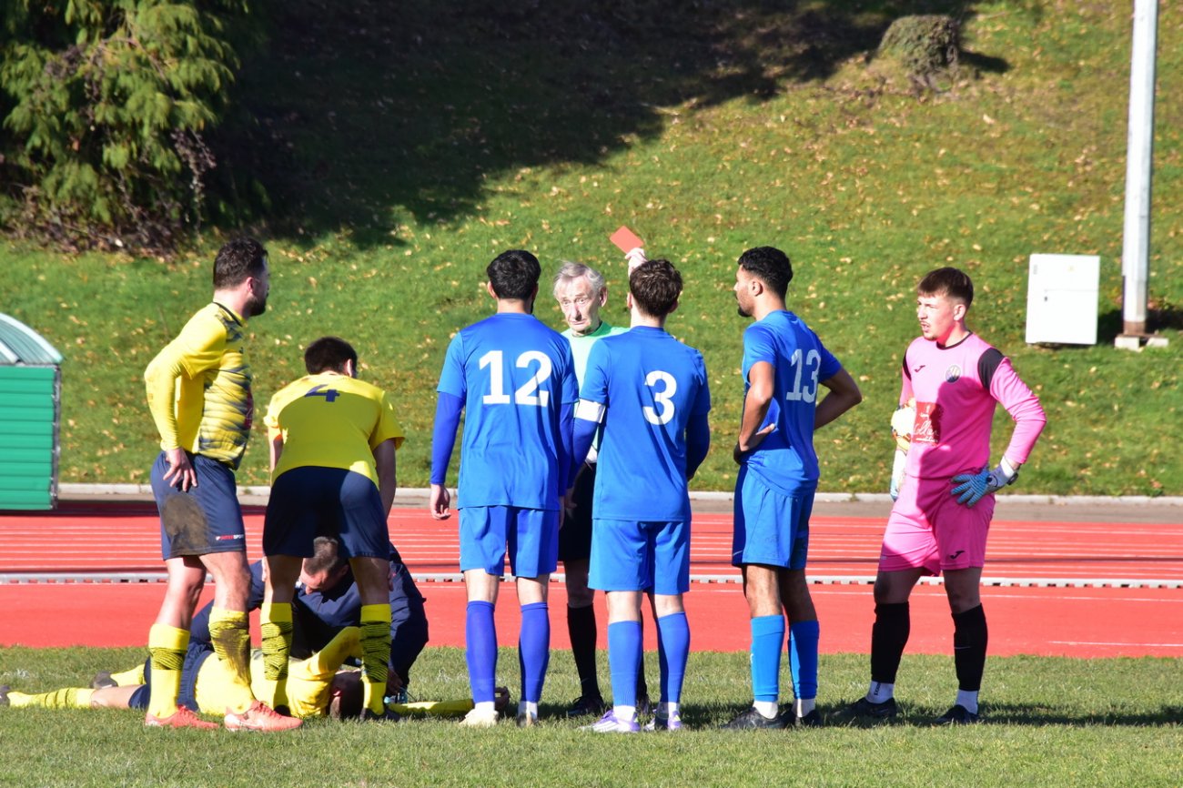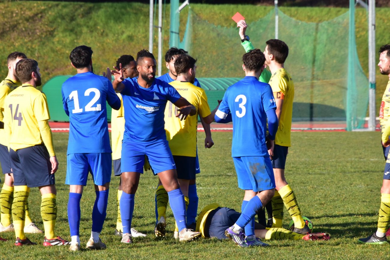 A la 38e l’arbitre central se résigna à sortir sur blessure, remplacé par son assistant numéro deux, le tournant du match. Julien Serpry en profita pour faire rentrer ses deux attaquants, Erkan Sahin et Anisse Dridi. Le match changea complètement de physionomie. Sur un des premiers ballons, Anisse Dridi récupéra le ballon dans les pieds d’un défenseur sanvignard qui semble être touché. Le nouvel arbitre, à quarante mètres de la faute, donnera un rouge (45e), sans avoir, pourtant, vu l’action et devant l’incompréhension générale.