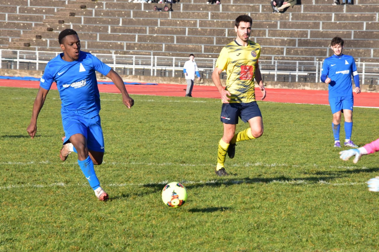 L’entame de match a été locale, avec deux débordements de Seydou Koné finalisés par un tir non cadré et un poteau (2e et 7e). Sanvignes répondait par un contre rondement mené, Rémy Rito débordait, lui aussi, sur son flanc gauche, son tir croisé ne sera pas cadré (8e).