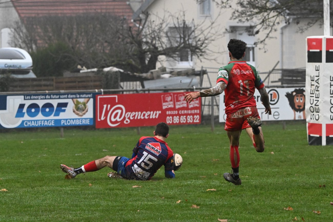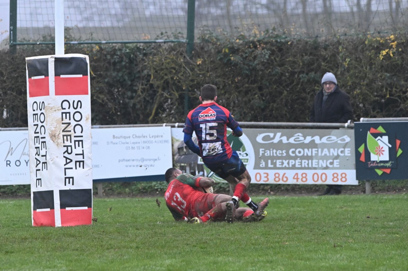 Ils ont fait déjoué les icaunais à certains moments. Ils auraient mérité de virer à la mi-temps avec un score plus serré. Mais comme souvent ils ont payés cash leurs erreurs. Comme le dégagement dans les bras du feu follet Jaars qui relance de ses 22 mètres et va à dames (9ème mn); ou la passe interceptée au 50 mètres par le puissant centre Delai qui va marqué entre les perches (30ème mn). Ils auraient mérités de marquer un essai peu avant la pause après un contre de Moriaux depuis ses 22 mètres il joua un coup de pied pour lui même, mais glissa en voulant reprendre le ballon a quelques mètres de la ligne!