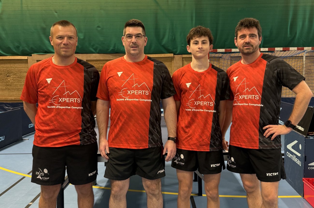 Notre équipe composée de Jean-Philippe GARRIDO, Olivier GARDET, Rodolphe BOLOT et Sylvain KMIEC a rencontré une robuste équipe de Mâcon TT 7 et perd 15-3 avec trois points marqués par Jean-Philippe, Rodolphe et le double Rodolphe/Sylvain. A noter que 3 matchs ont été disputés à la belle sans succès.