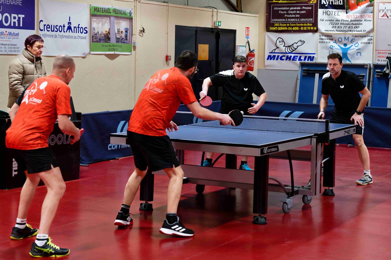 En déplacement à Charnay-Lès-Mâcon, composé de Patrick CAYEUX, Franck TORRENT, Camille DUPONT et Apolline DERANGERE, une victoire haut la main est obtenue pour l'ensemble de ces joueurs. Franck, Camille et Apolline réalisent chacun un carton plein en simple et en double, tandis que Patrick pour sa reprise en compétition, restera sur 4 défaites en simple non sans mériter. Victoire finale 14 à 4. L'équipe termine à la 2è place de sa poule en obtenant 5 victoires lors des 7 journées.