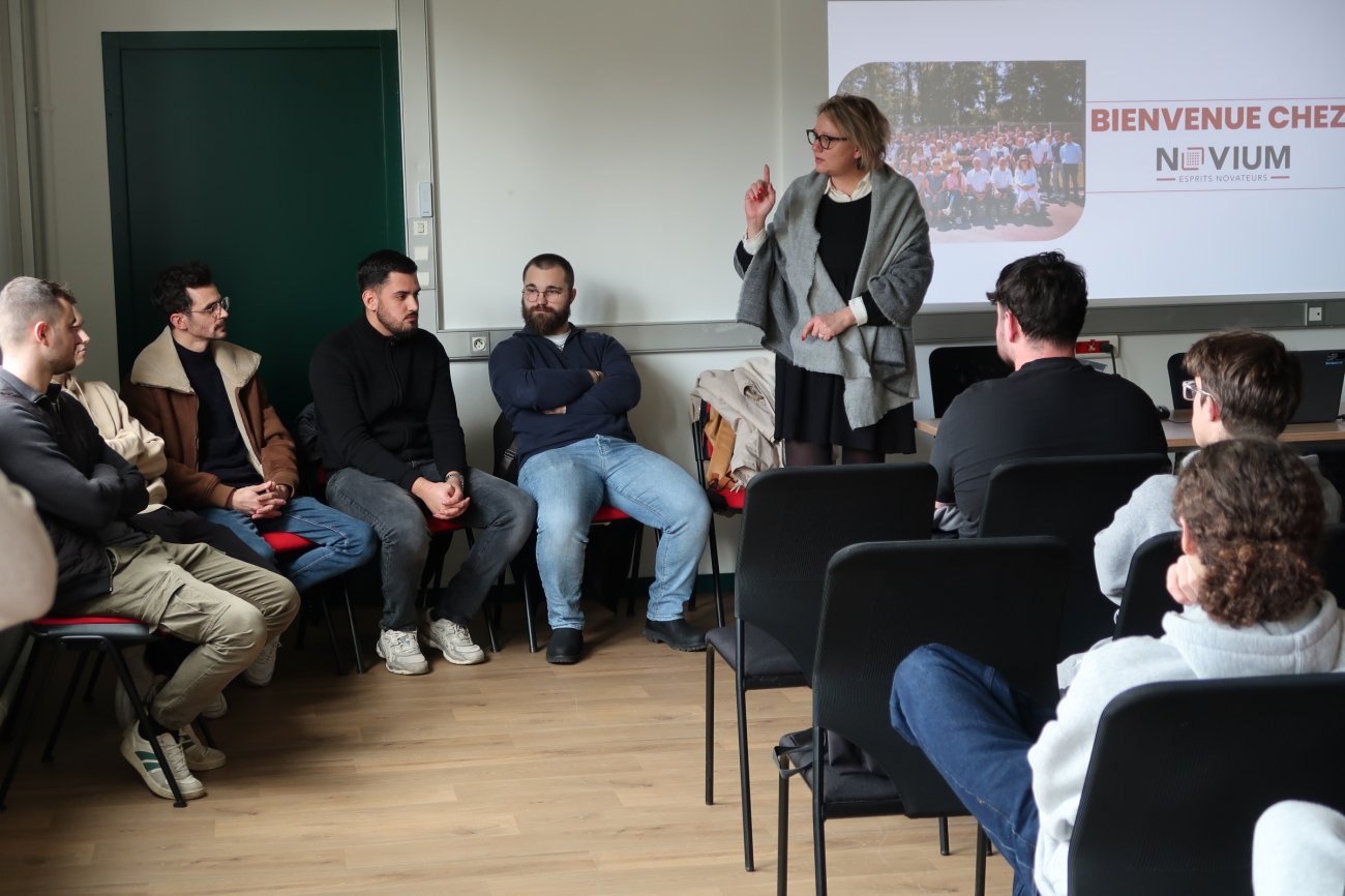 Beaucoup de jeunes présents dans la salle connaissaient NOVIUM puisque bon nombre d’entre eux ont pu réaliser des périodes de formation en milieu professionnel dans le cadre de leur Bac Pro. Novium étant l’une des entreprises partenaires majeures du lycée pour ce type d’actions.