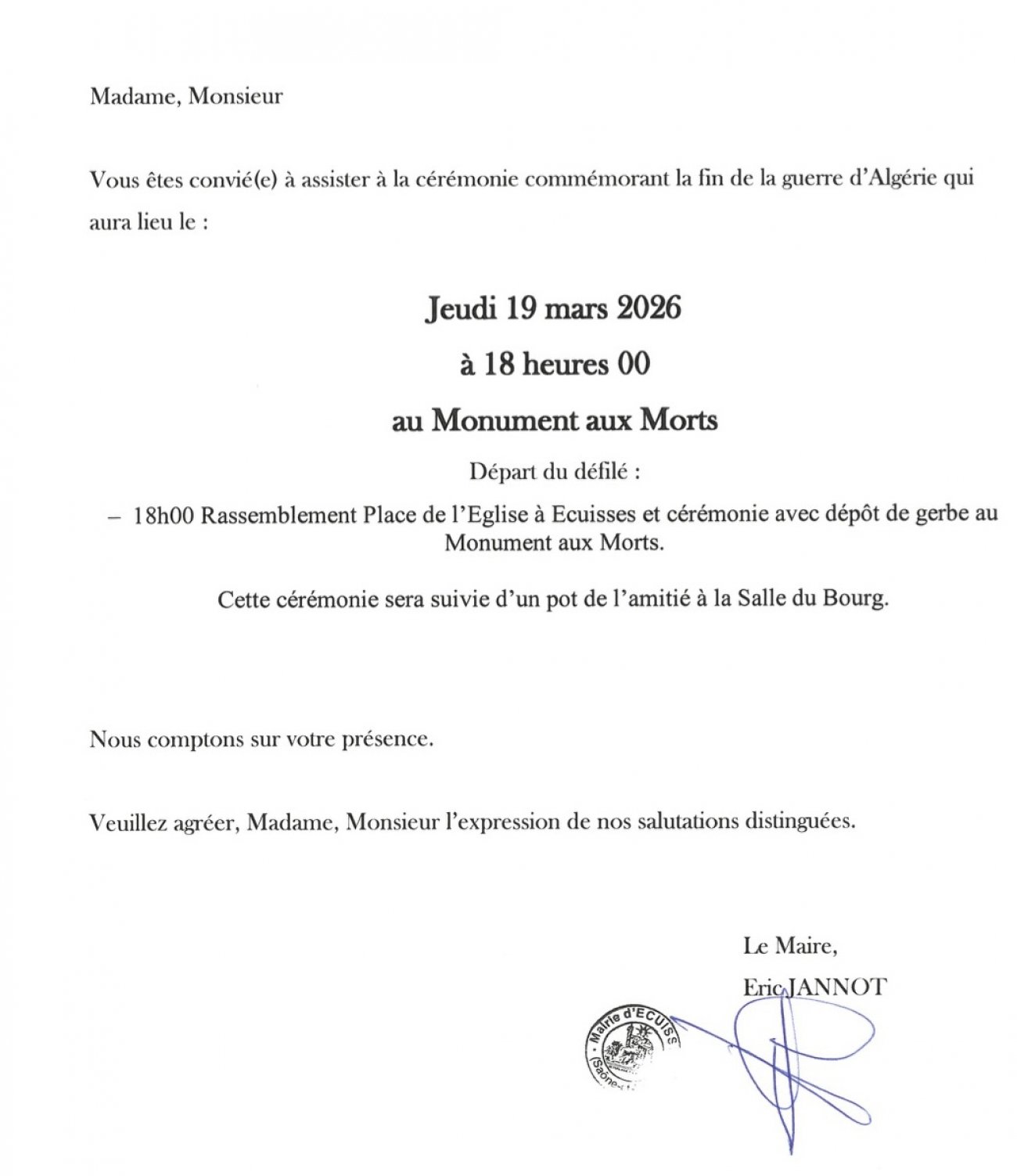 ÉCUISSES : Commémoration du cessez-le-feu en Algérie