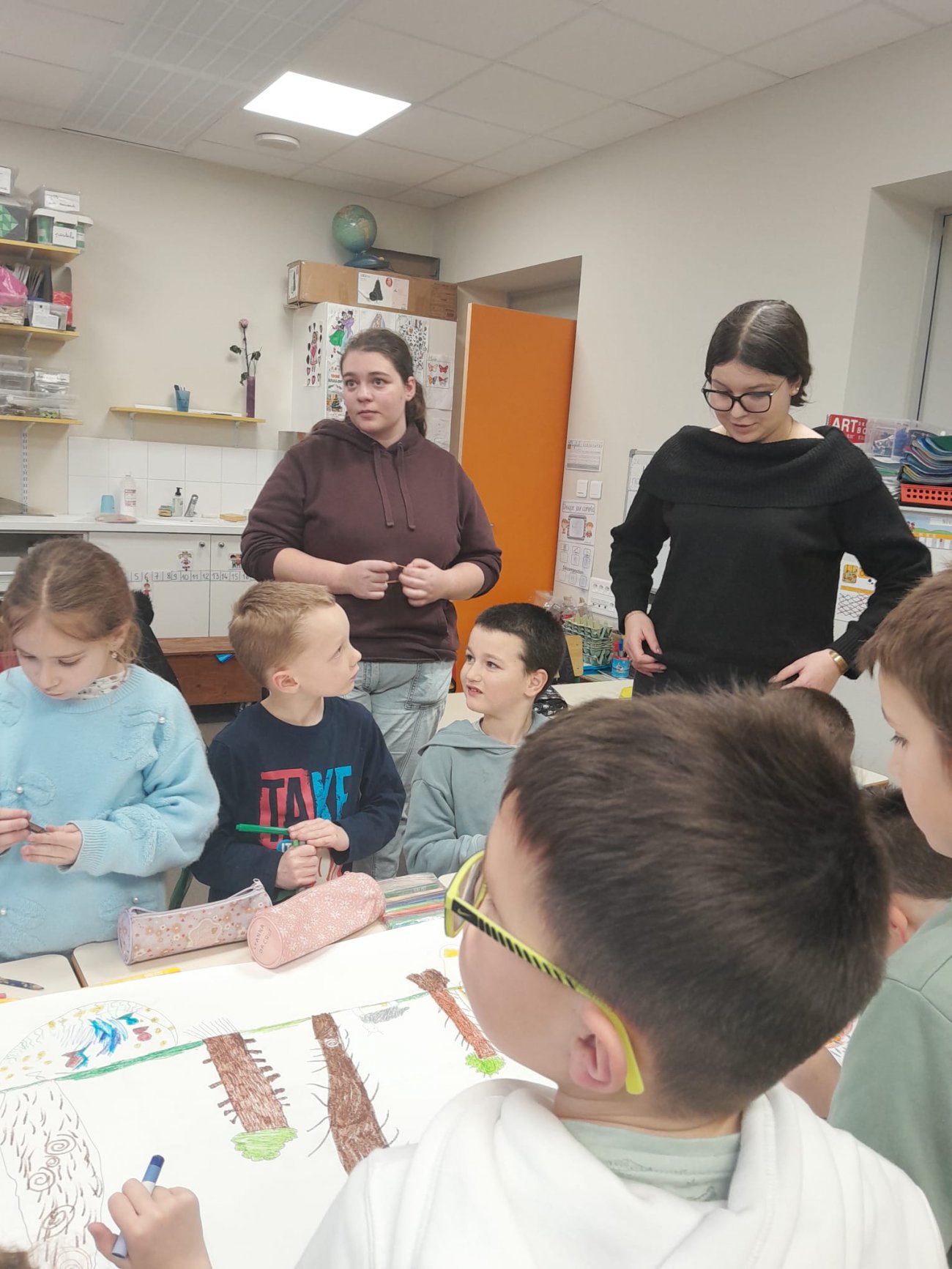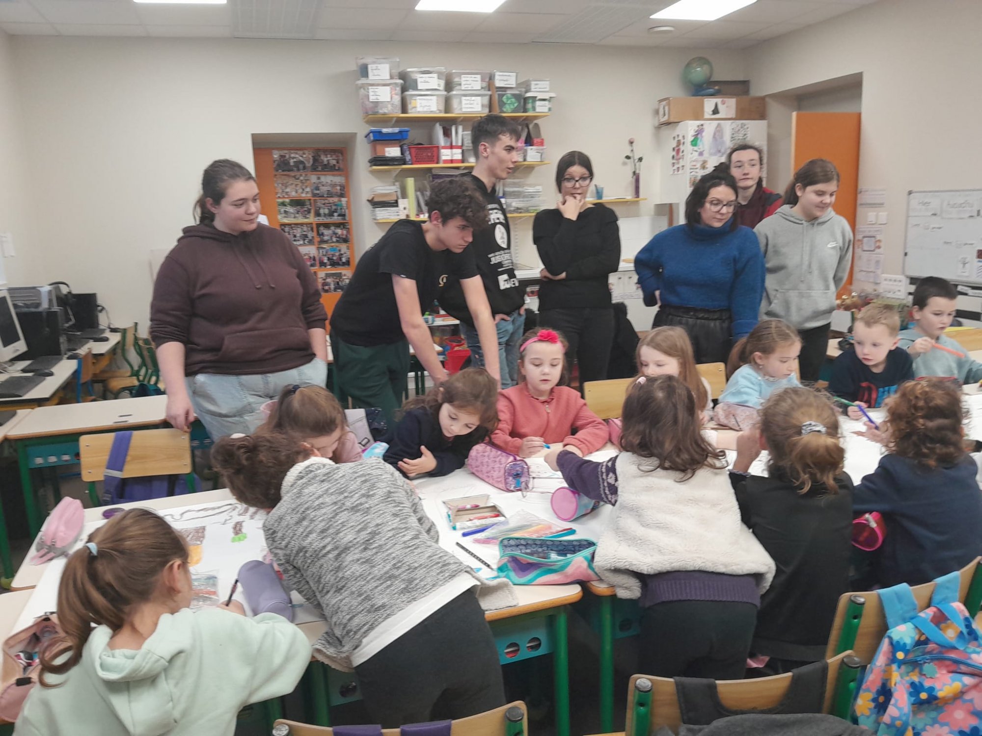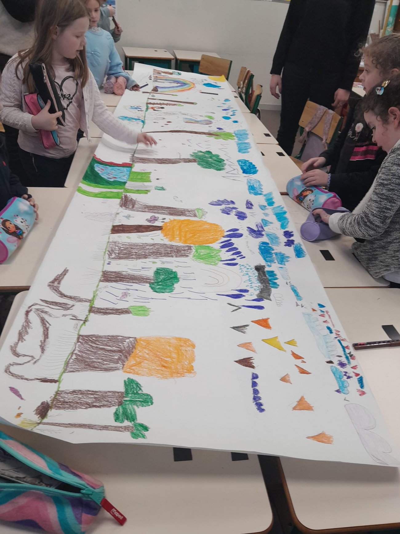 A l’issue de la séance, les élèves ravis par cette autre façon d’apprendre, ont réalisé une fresque représentant la forêt et leurs habitants.