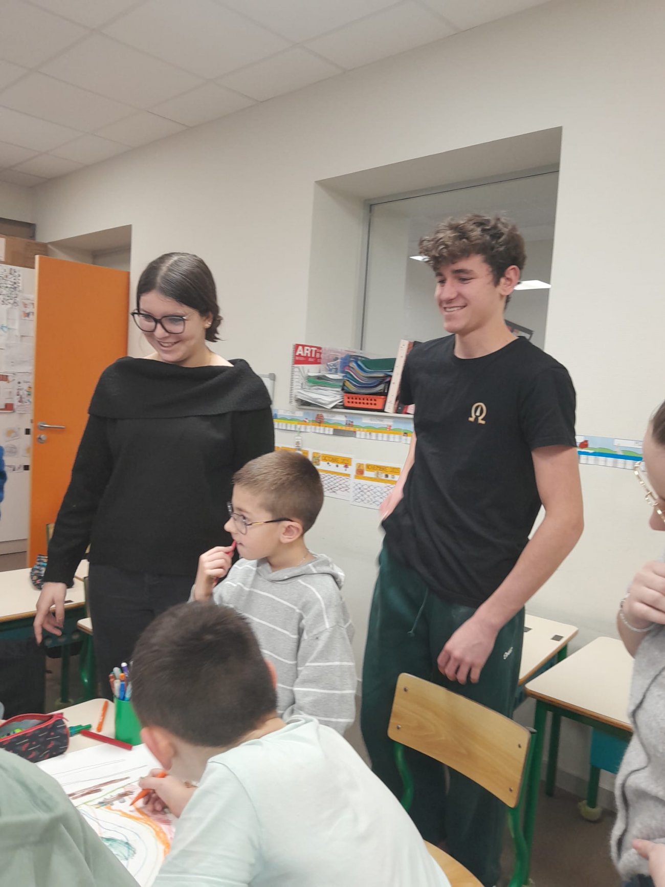 Les lycéens : Mathias, Alice, Océane, Noé, Romane e Manolo sont tous membres des « écoresponsables », un club animé par madame MAILLOT pour sensibiliser les apprenants à l’écologie. Lors de cette visite à l’école primaire, ils ont choisi de faire découvrir la forêt aux jeunes élèves. On précisera que les lycéens issus des 4 classes de l’établissement ont dispensé leurs connaissances auprès des CP, CE1 et CE2.