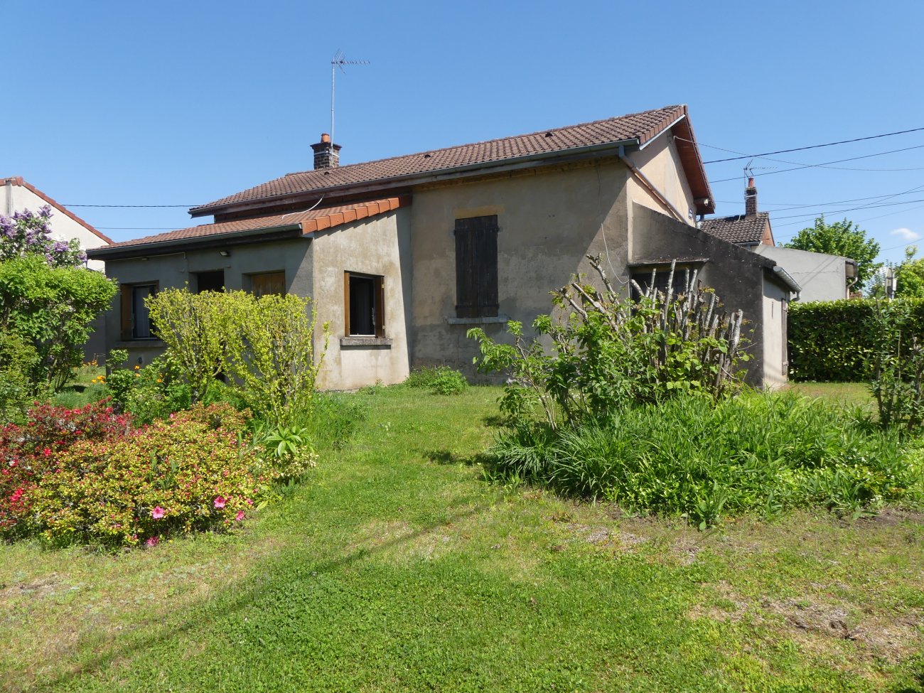 IDÉAL 1er ACHAT - MAISON DE PLAIN-PIED à réactualiser, comprenant une pièce d'entrée, dégagement avec placard, séjour, une chambre avec placard, une pièce de 8 m² pouvant faire office de bureau ou chambre d'appoint, cuisine, WC avec placard, salle d'eau.
