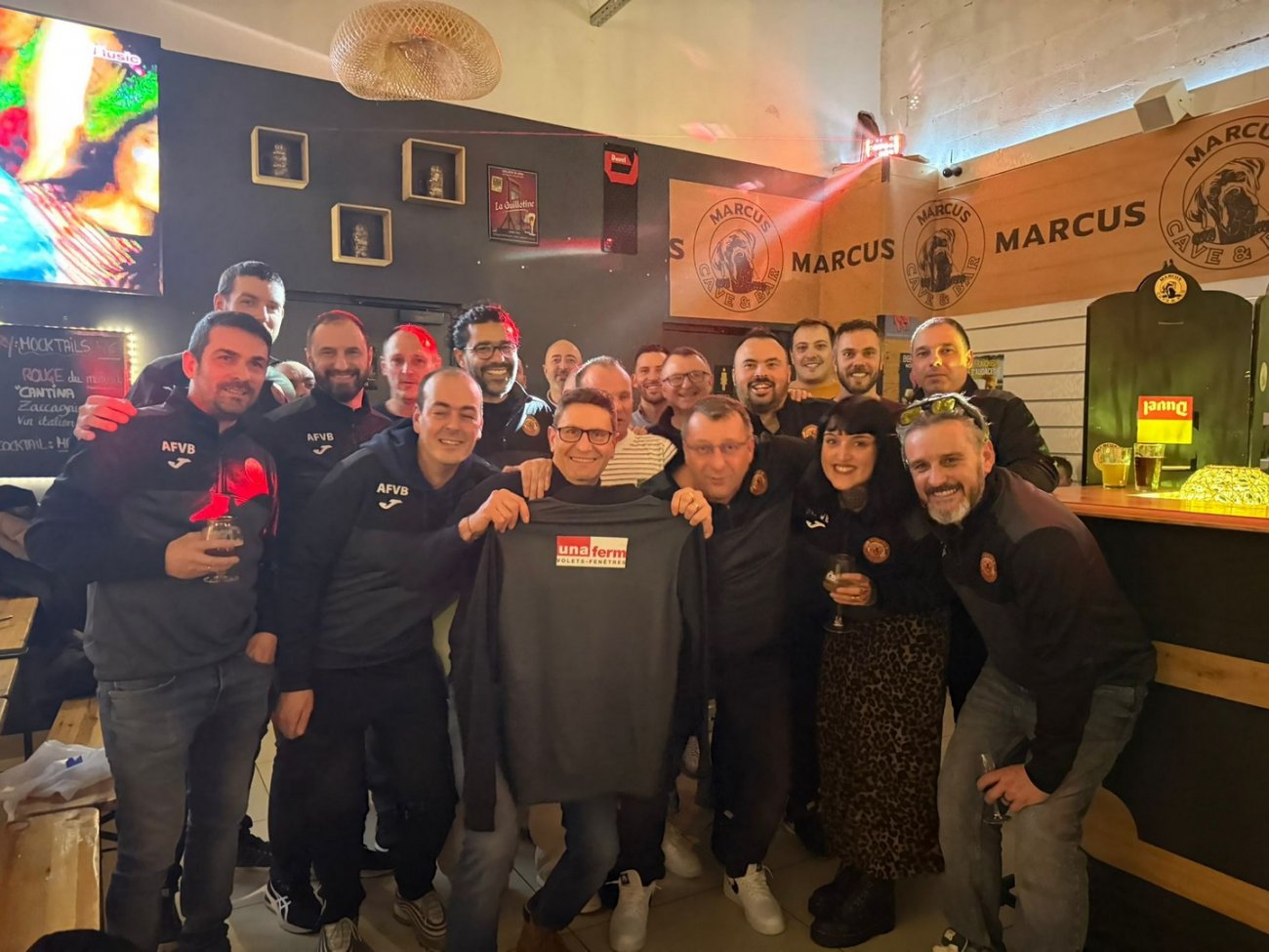 Ce vendredi après un entraînement poussé mais joyeux à l’Athletic Arena, la vingtaine de joueurs s’est retrouvée au Marcus Bar. Pas de victoire à arroser mais simplement une remise officielle de sweat-shirts offerts par Unaferm et le bar Le Marcus. La soirée Chouffe s’est poursuivie dans la bonne humeur partagée autour de la galette en provenance de la pâtisserie Gautheron.