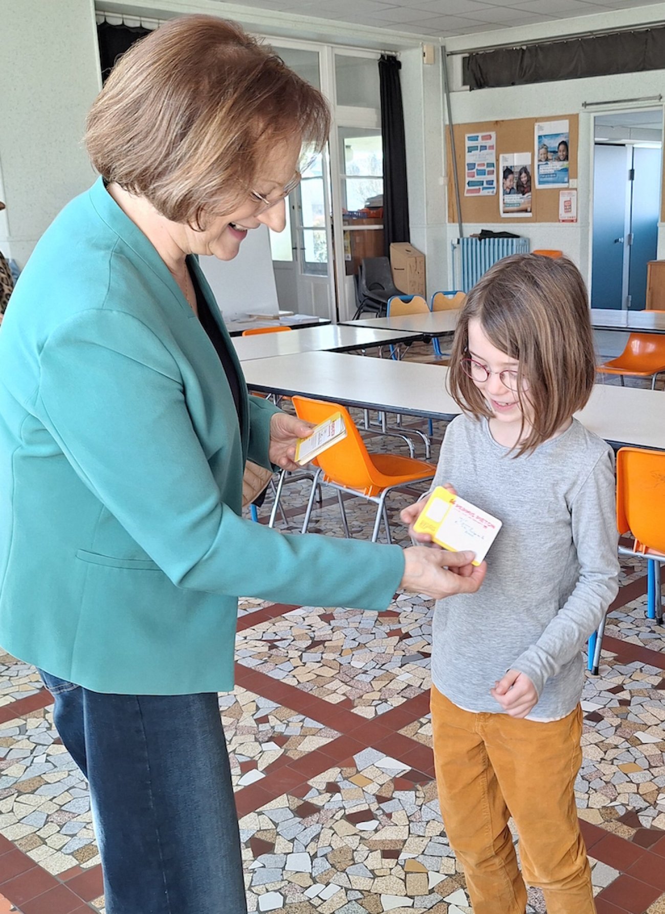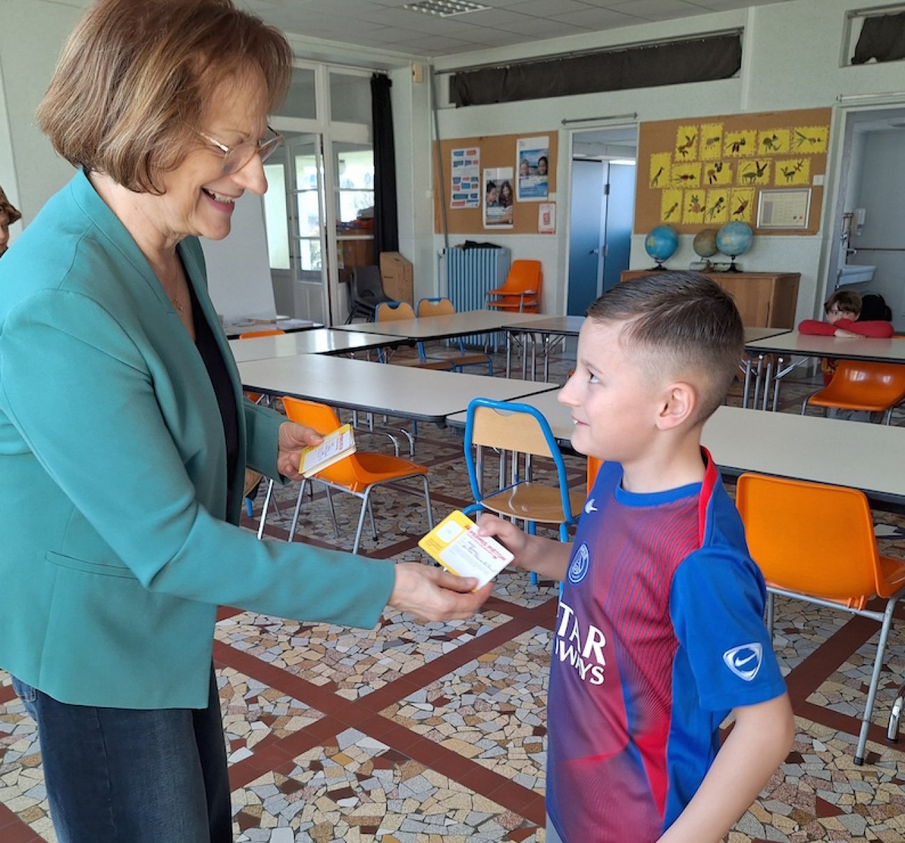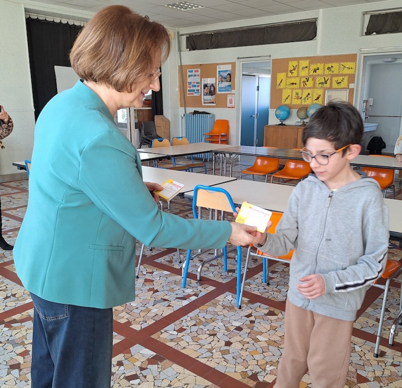 Parce qu'il y a encore beaucoup trop d'accidents d'enfants piétons en France, les collectivités territoriales mettent en oeuvre le permis piéton pour les enfants, et elles s'impliquent particulièrement en milieu scolaire dans le cadre de l'éducation citoyenne à la route. Ce permis piéton est jalonné de plusieurs phases. Ainsi, une présentation théorique sur la sécurité, sur les panneaux à respecter, l’ultime étape est arrivée ce vendredi pour les enfants de l'école, s'agissant de recevoir le fameux permis qui matérialise leur engagement à assurer leur propre sécurité de piéton. Chantal Cordelier a échangé avec les enfants et les a invité a être vigilant : «Je compte sur vous quand vous allez par exemple à la cantine. Expliquez bien à vos copains là où il y a le danger, leur dire que chacun doit faire attention…»