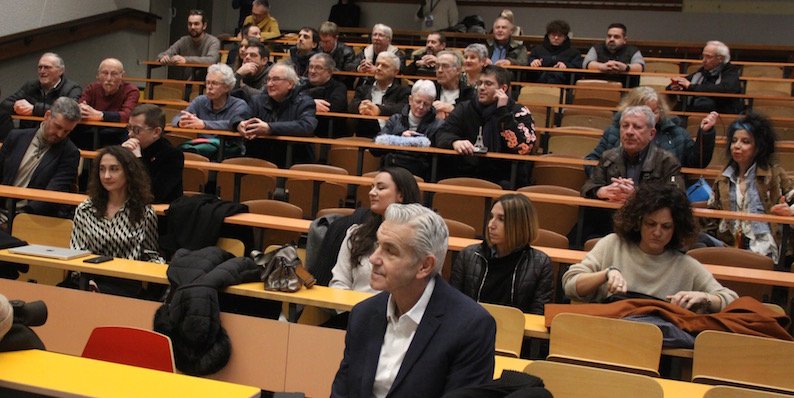 Après la visite des locaux du FabLab au sein d’Hub&Go, les prises de parole se sont tenues dans l’amphithéâtre du bâtiment central de l’IUT où Jean-Jacques Pagnier président du FabLab a rappelé le rôle, les objectifs et les actions et réalisations de l’association qu’il préside. «Nous sommes une soixantaine d’adhérents. On accompagne les étudiants de Polytech et de l’IUT, on réalise des formations pour les adhérents…et sommes présents sur tous les événements. C’est un lieu de convivialité, on échange. Au FabLab « tout est possible » a martelé Jean-Jacques Pagnier.