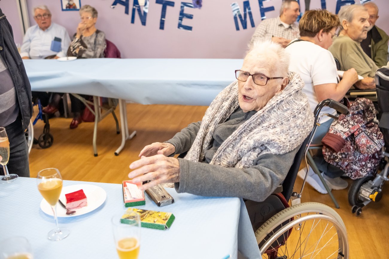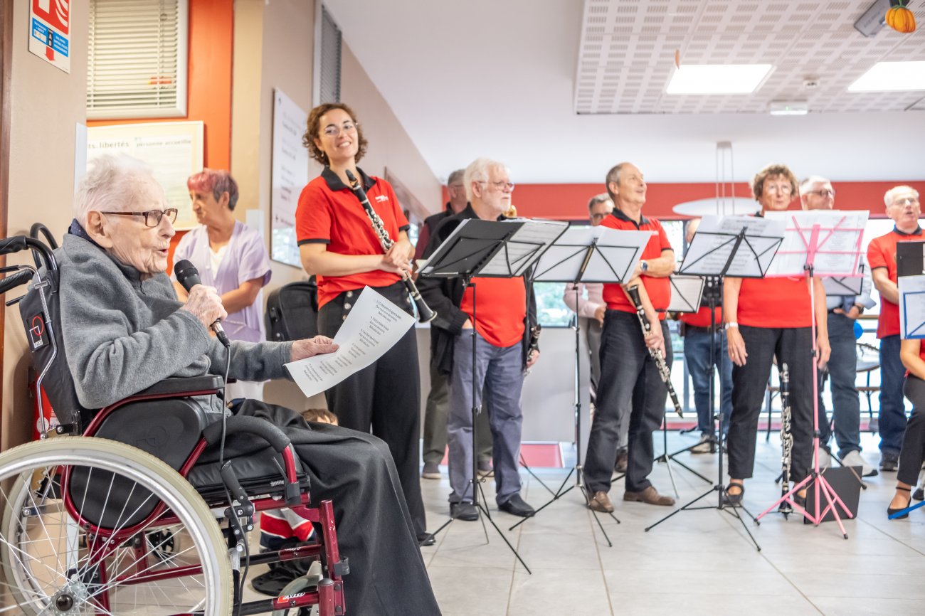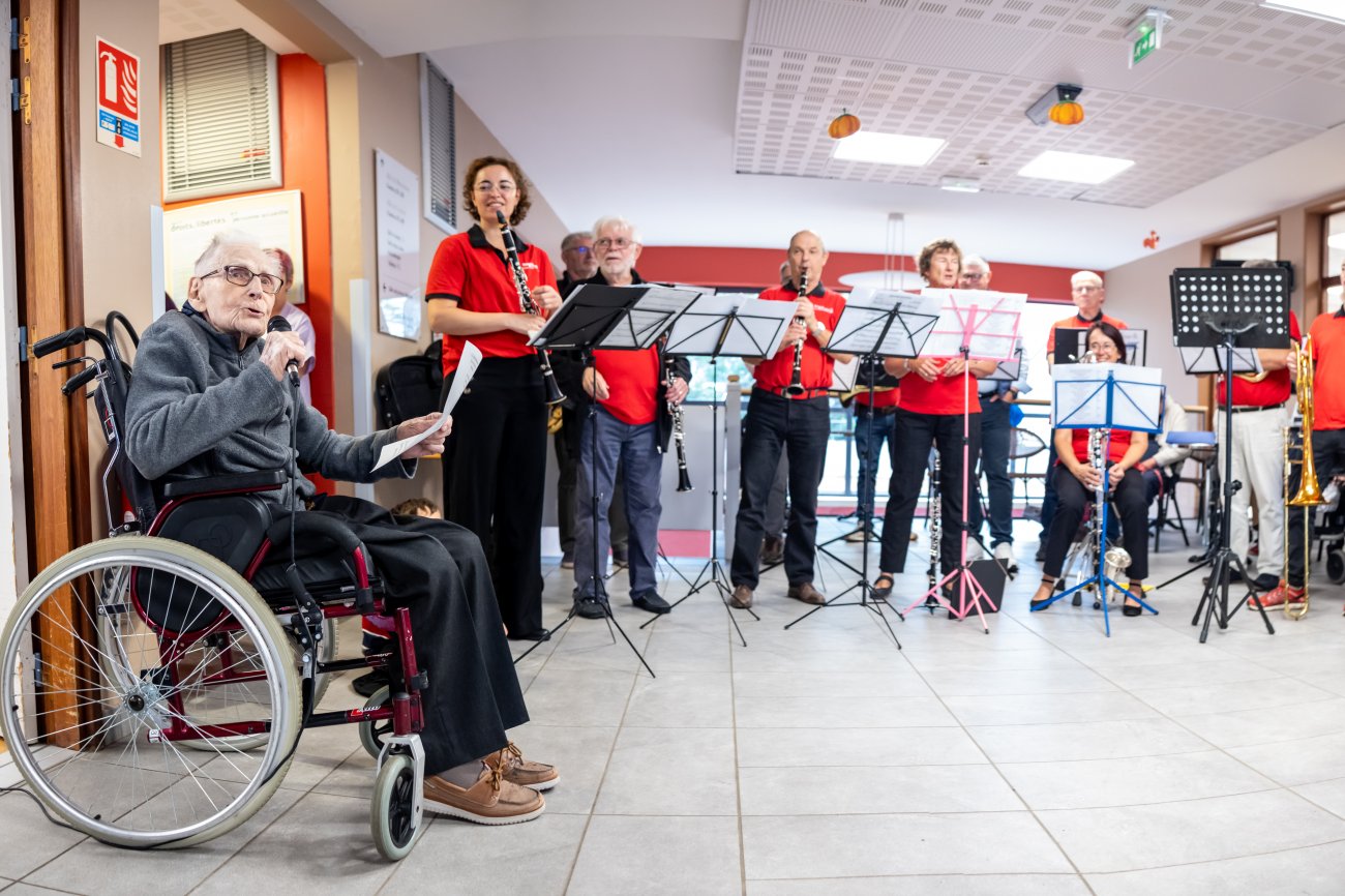 Un grand moment de bonheur et inoubliable pour tout le monde ! Un moment que l'Harmonie du Creusot a mis en musique en faisant une belle surprise au centenaire et à sa famille, en présence aussi du Maire David Marti. Camille Dufour a profité de l'événement pour chanter et même jouer de l'Harmonica, avant de longues séances de photos et selfies souvenirs...