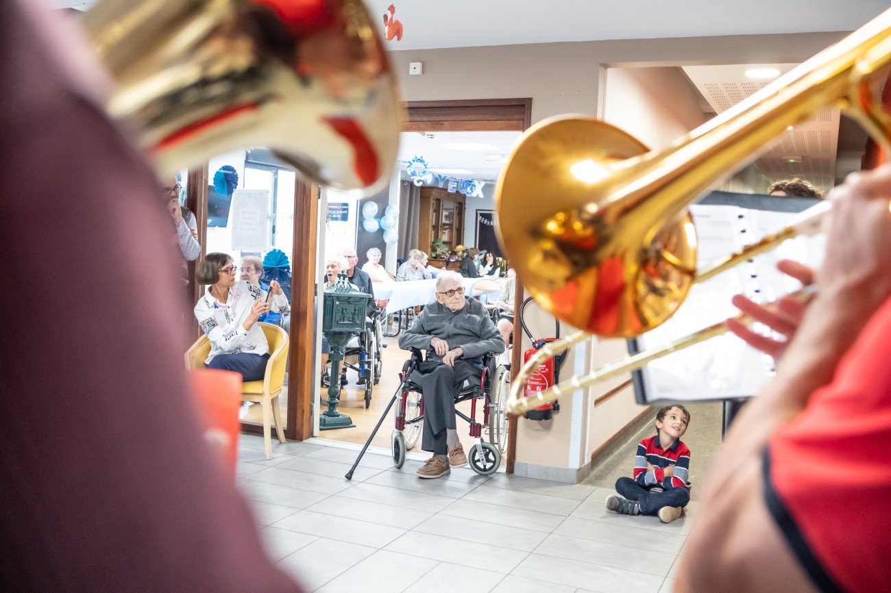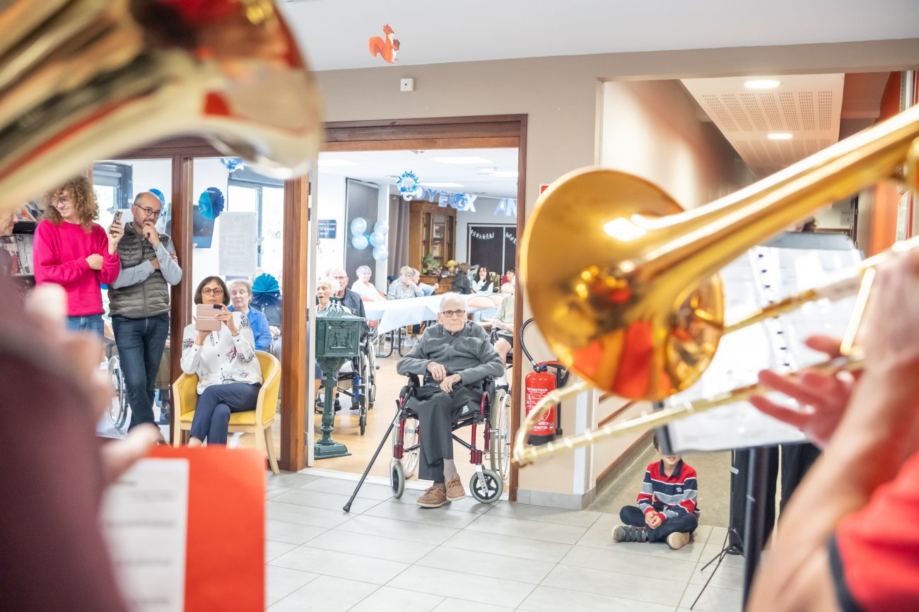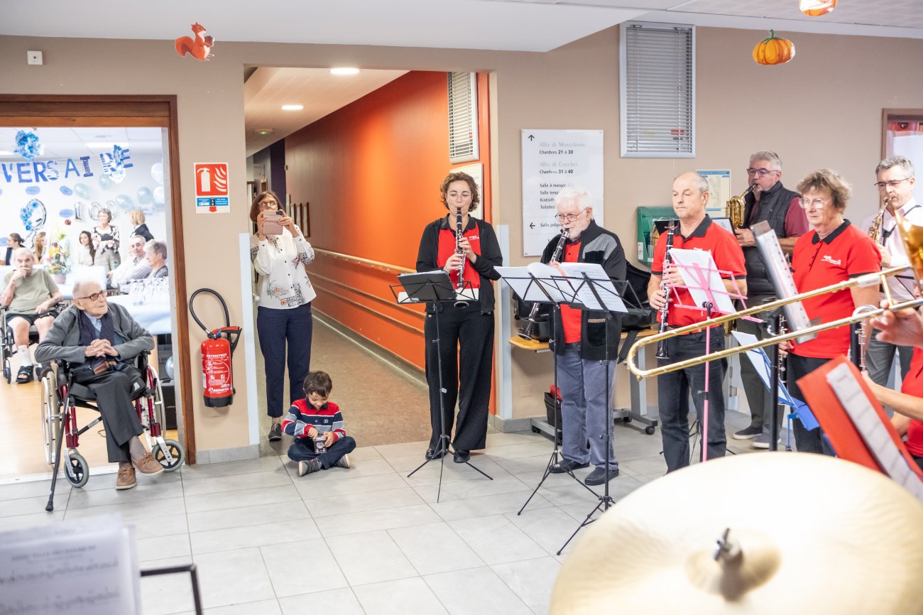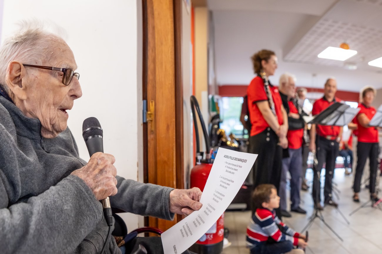 Un grand moment de bonheur et inoubliable pour tout le monde ! Un moment que l'Harmonie du Creusot a mis en musique en faisant une belle surprise au centenaire et à sa famille, en présence aussi du Maire David Marti. Camille Dufour a profité de l'événement pour chanter et même jouer de l'Harmonica, avant de longues séances de photos et selfies souvenirs...