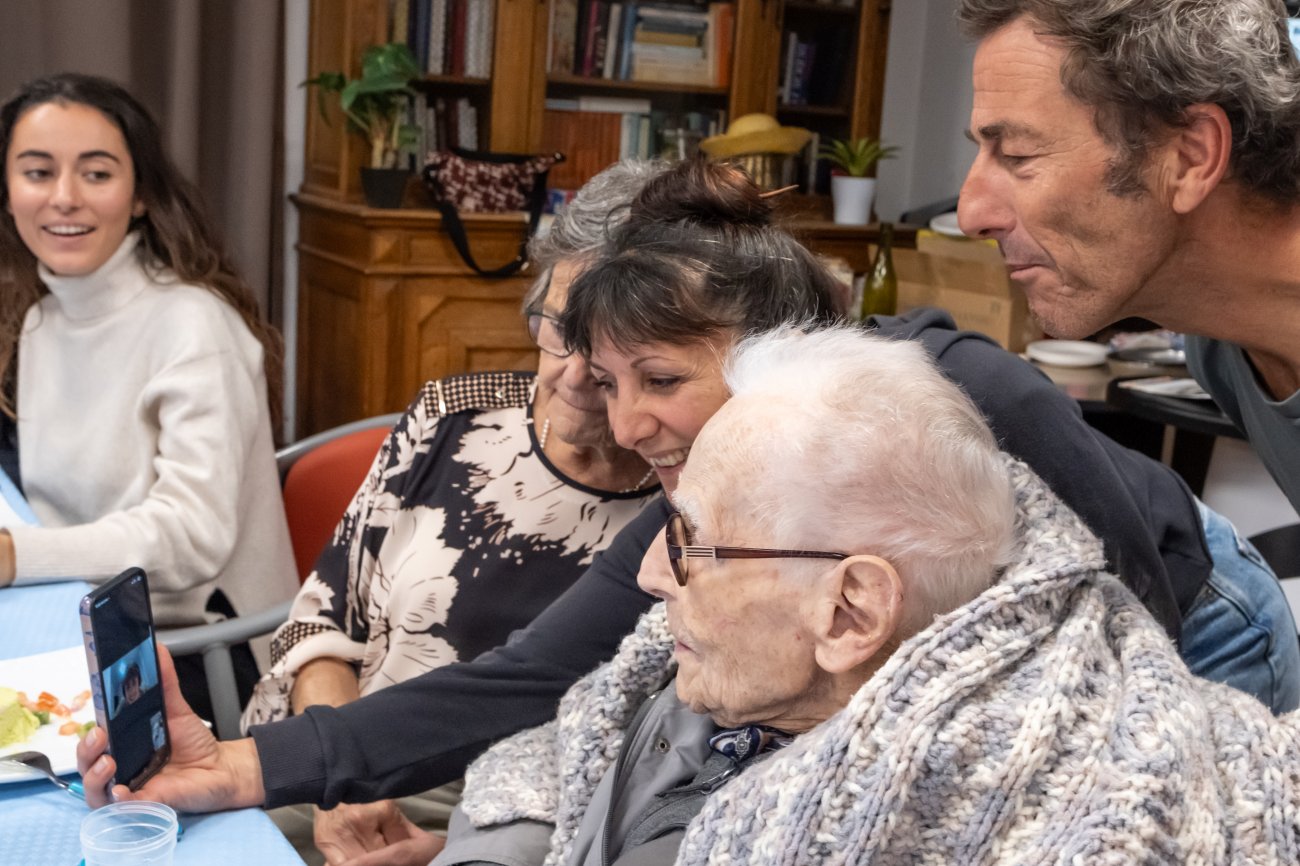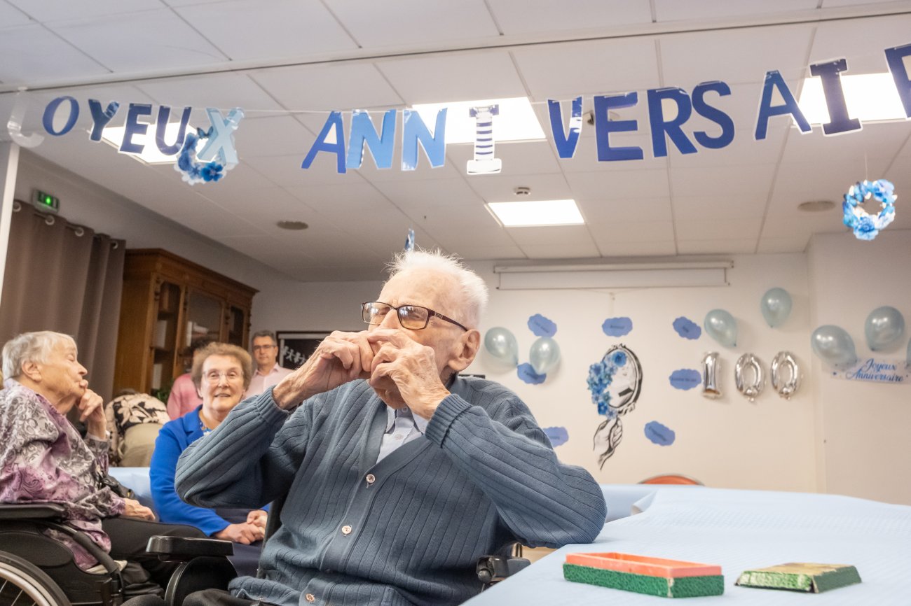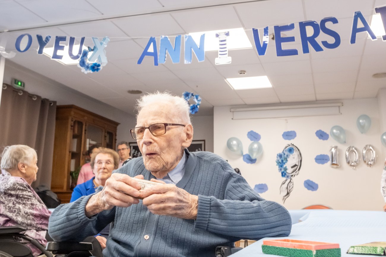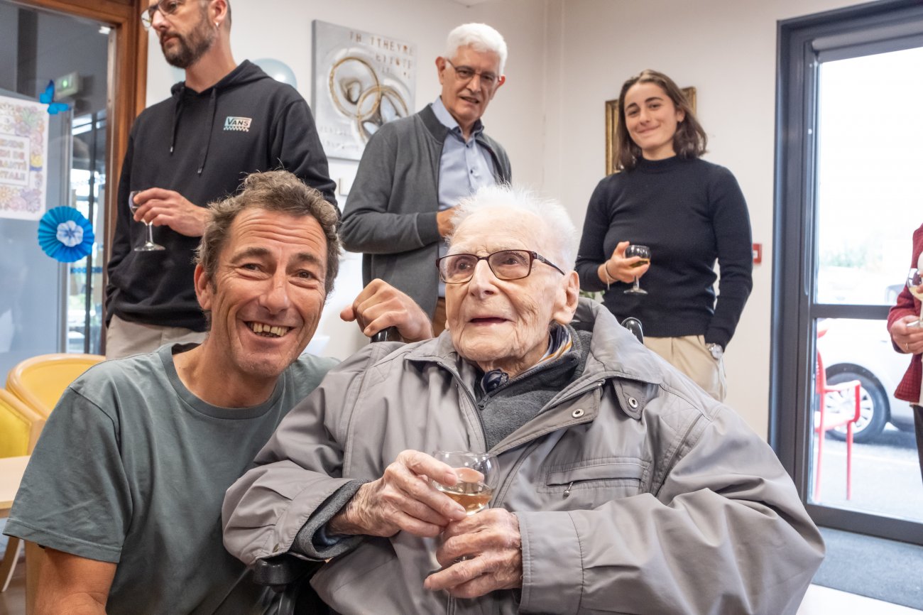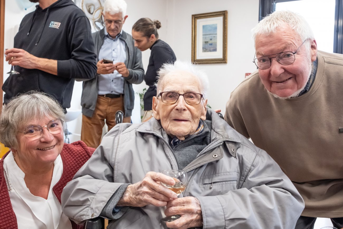 On n'a pas tous les jours 100 ans... Alors évidemment, toute la famille de Camille Dufour a voulu fêter son centenaire et tout le monde s'est retrouvé à l'EHPAD Saint-Henri. Les enfants : Geneviève, Gabriel, avec une pensée pour Christian... Les petits-enfants : Grégoire, Pierre, Amélie, Boris, avec une pensée pour Anne... Les arrière-petits-enfants : Mathilde, Justine, Léa, Julien, Marie Alice, Manon, Juliette, Camille, et son arrière arrière petite fille : Ksénia.