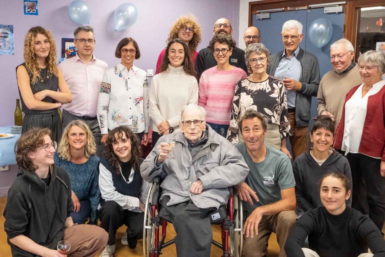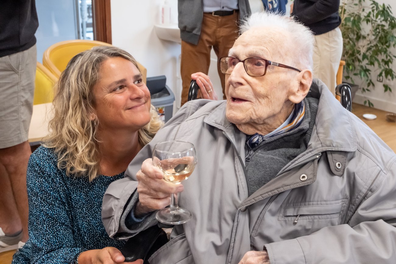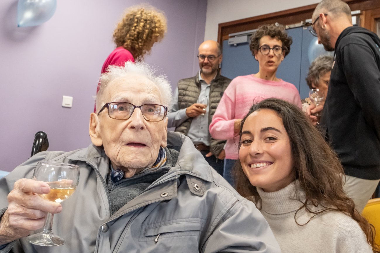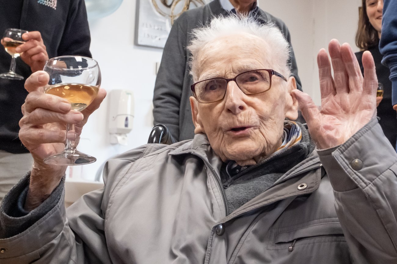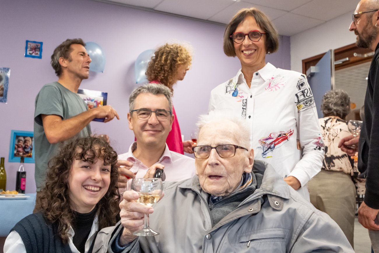 On n'a pas tous les jours 100 ans... Alors évidemment, toute la famille de Camille Dufour a voulu fêter son centenaire et tout le monde s'est retrouvé à l'EHPAD Saint-Henri. Les enfants : Geneviève, Gabriel, avec une pensée pour Christian... Les petits-enfants : Grégoire, Pierre, Amélie, Boris, avec une pensée pour Anne... Les arrière-petits-enfants : Mathilde, Justine, Léa, Julien, Marie Alice, Manon, Juliette, Camille, et son arrière arrière petite fille : Ksénia.
