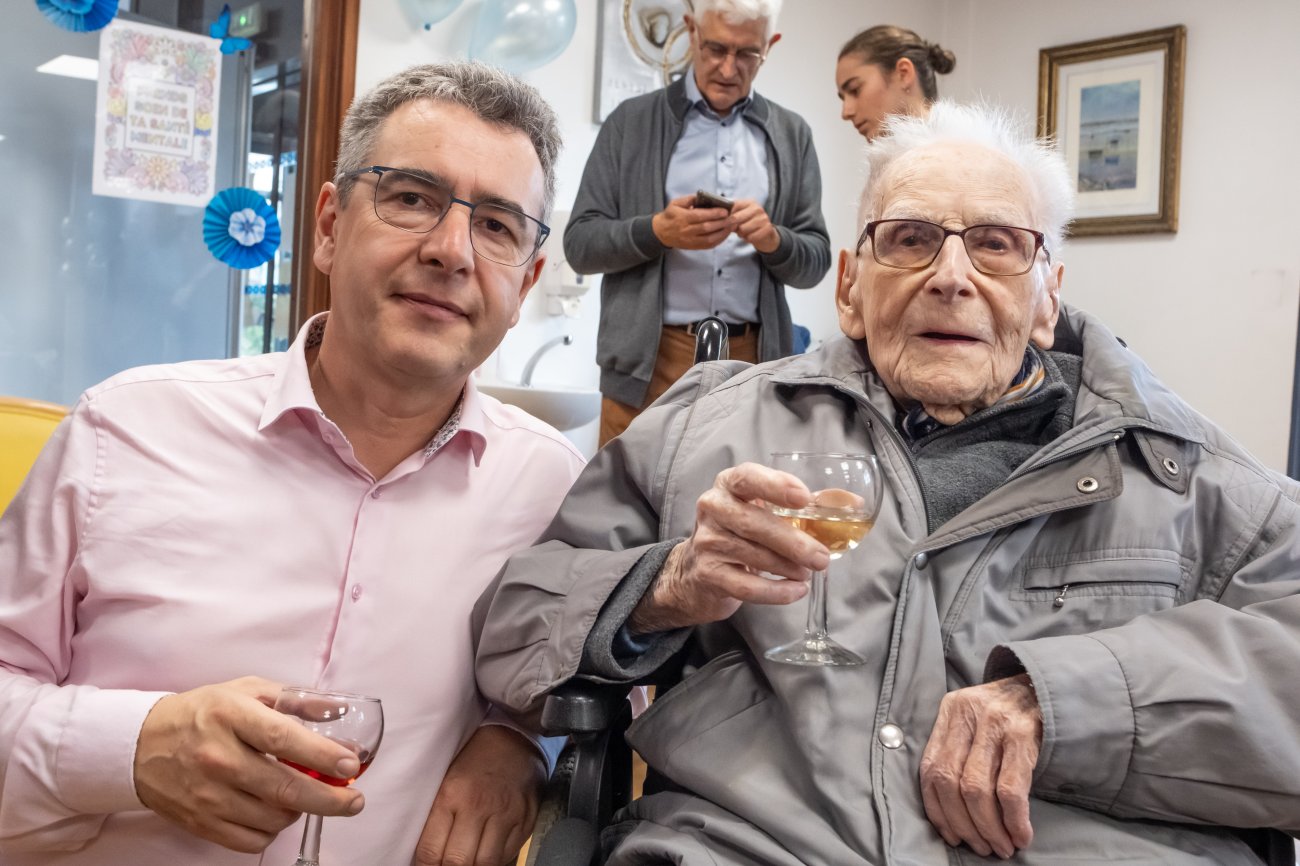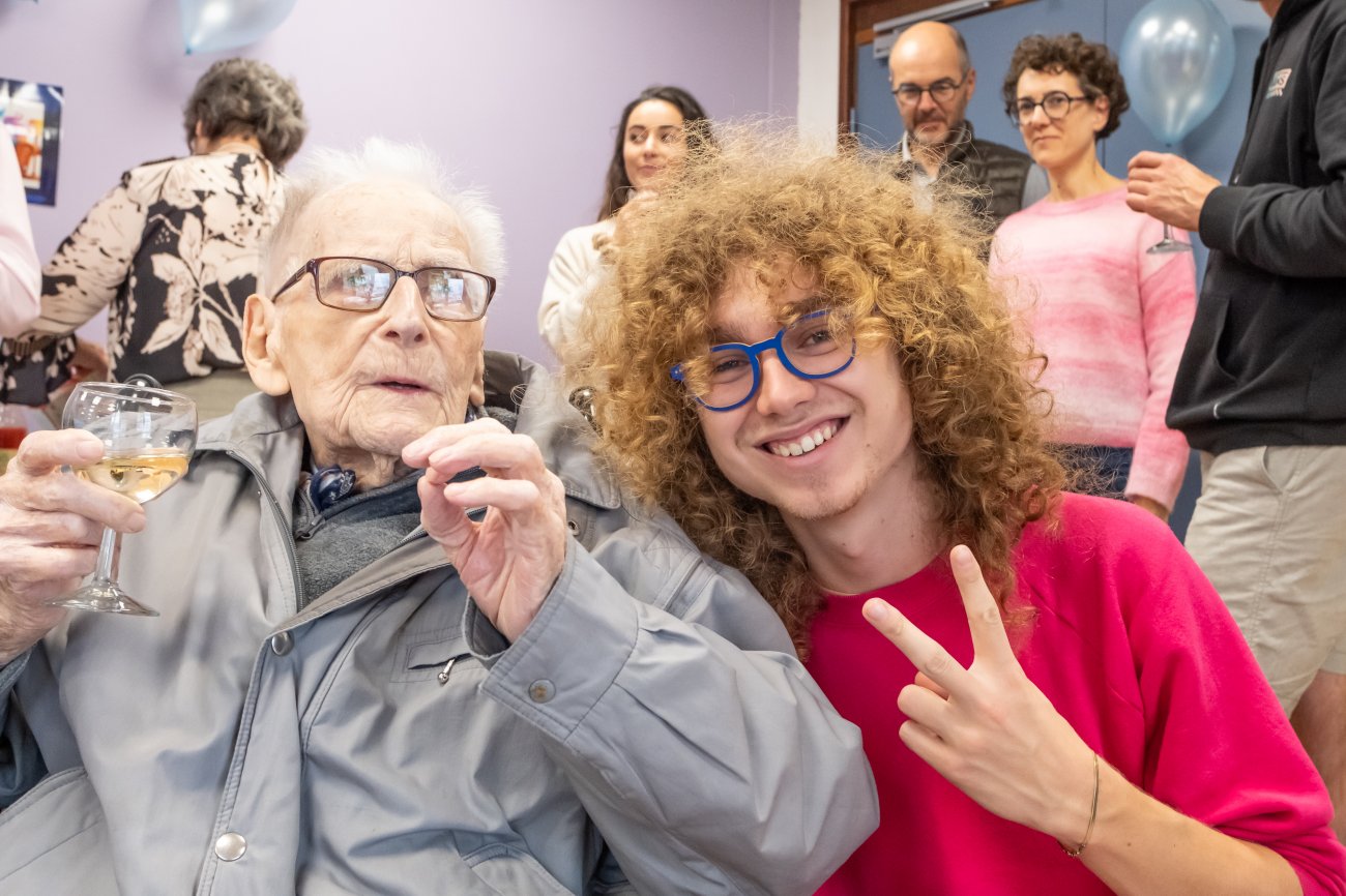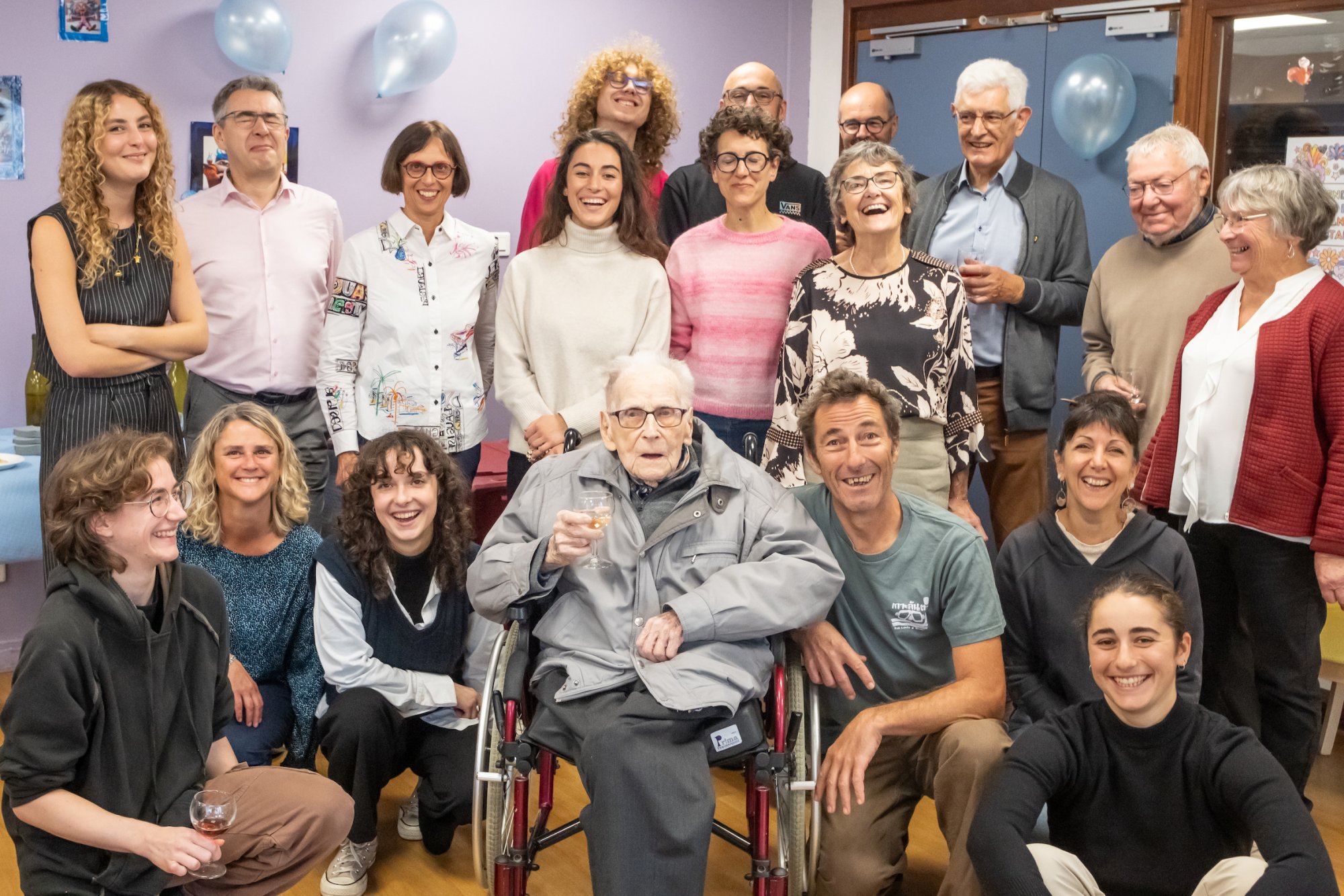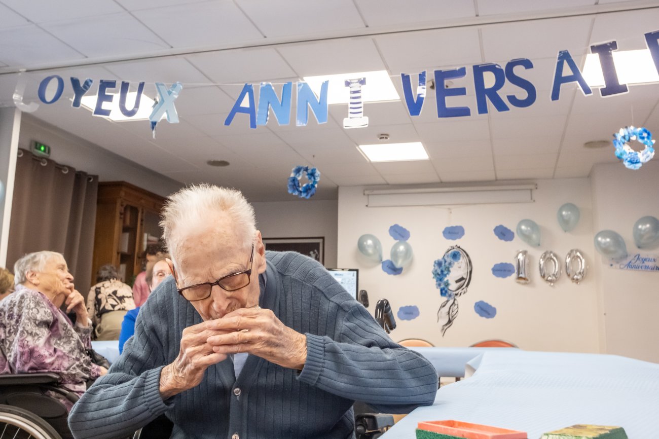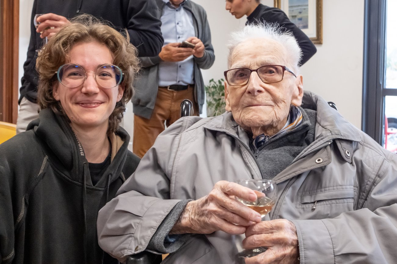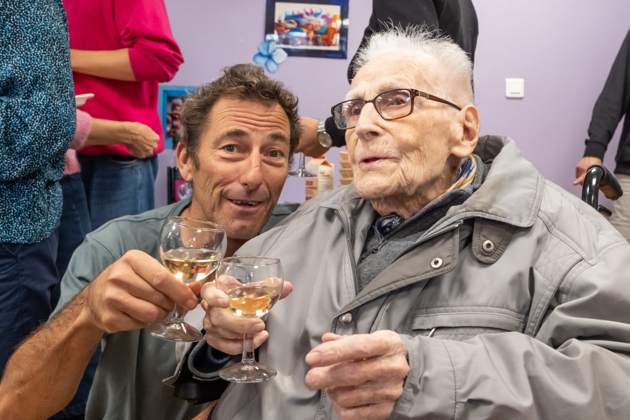 On n'a pas tous les jours 100 ans... Alors évidemment, toute la famille de Camille Dufour a voulu fêter son centenaire et tout le monde s'est retrouvé à l'EHPAD Saint-Henri. Les enfants : Geneviève, Gabriel, avec une pensée pour Christian... Les petits-enfants : Grégoire, Pierre, Amélie, Boris, avec une pensée pour Anne... Les arrière-petits-enfants : Mathilde, Justine, Léa, Julien, Marie Alice, Manon, Juliette, Camille, et son arrière arrière petite fille : Ksénia.