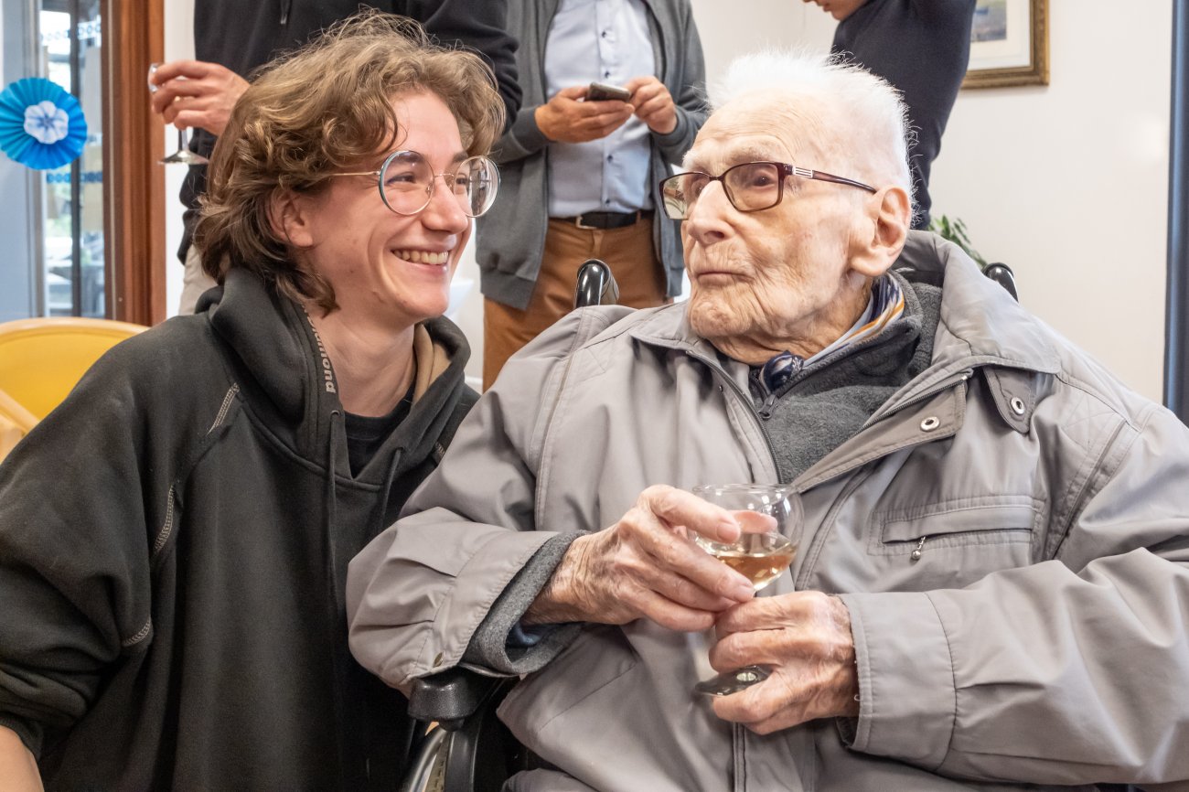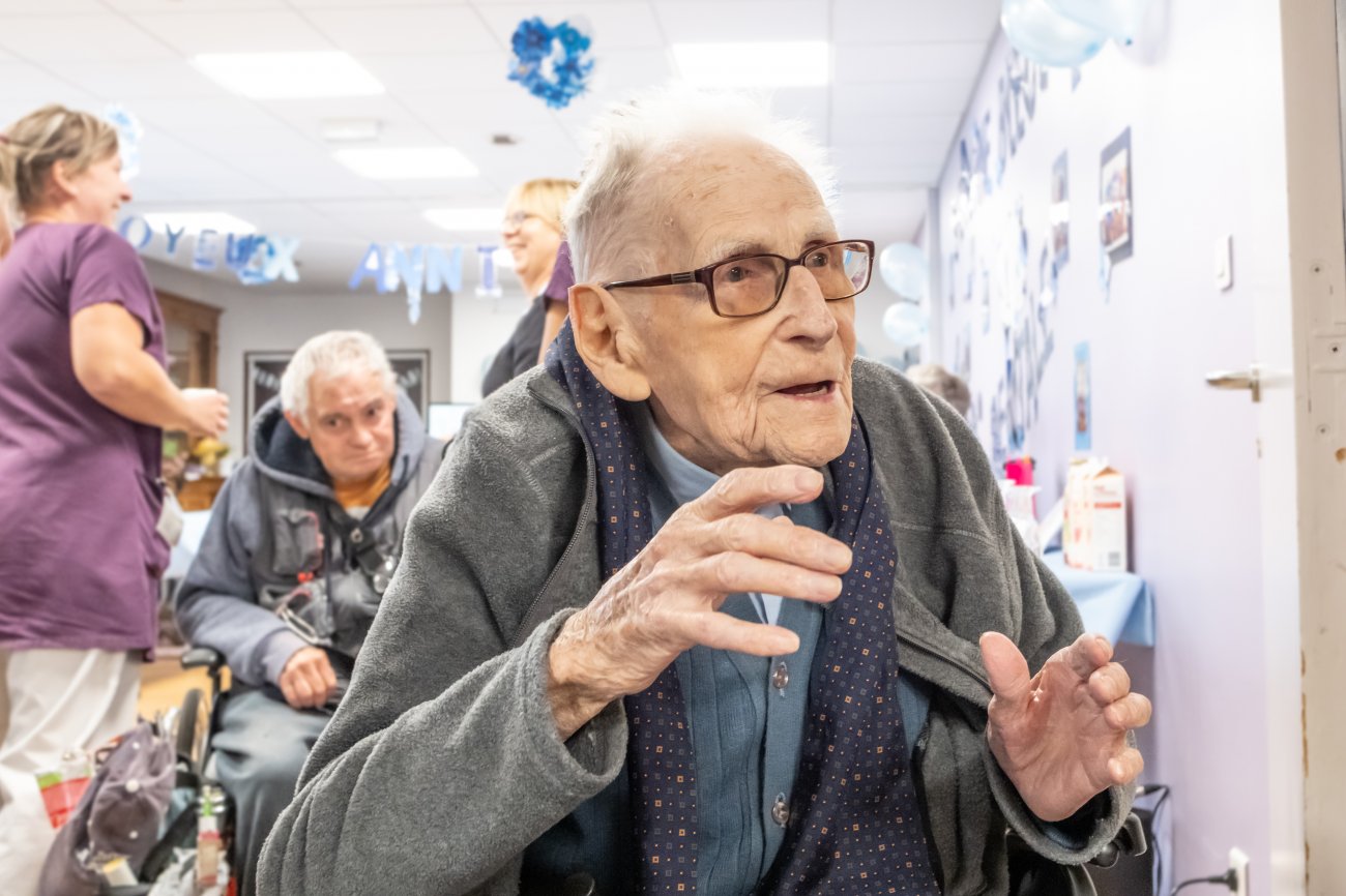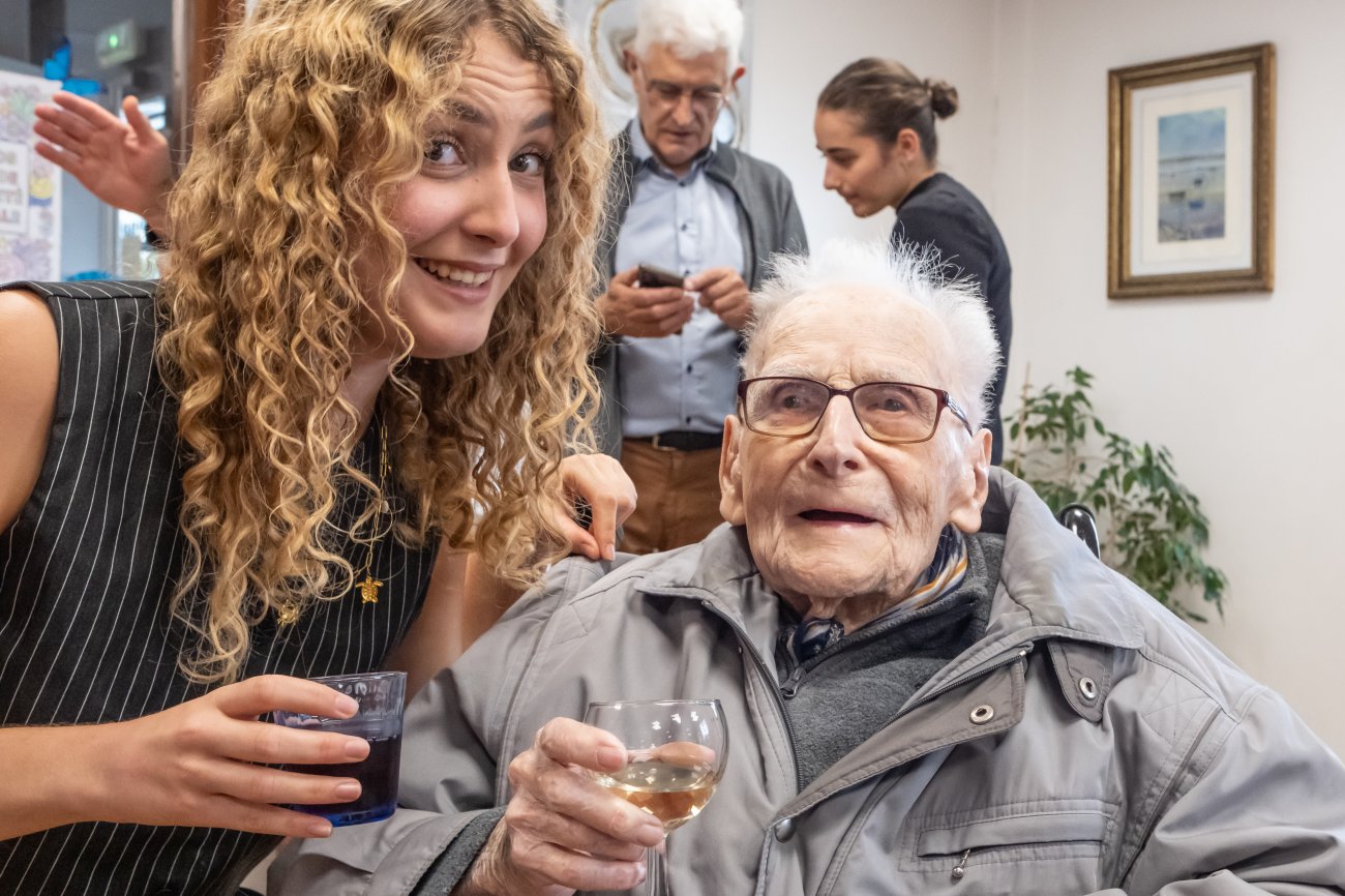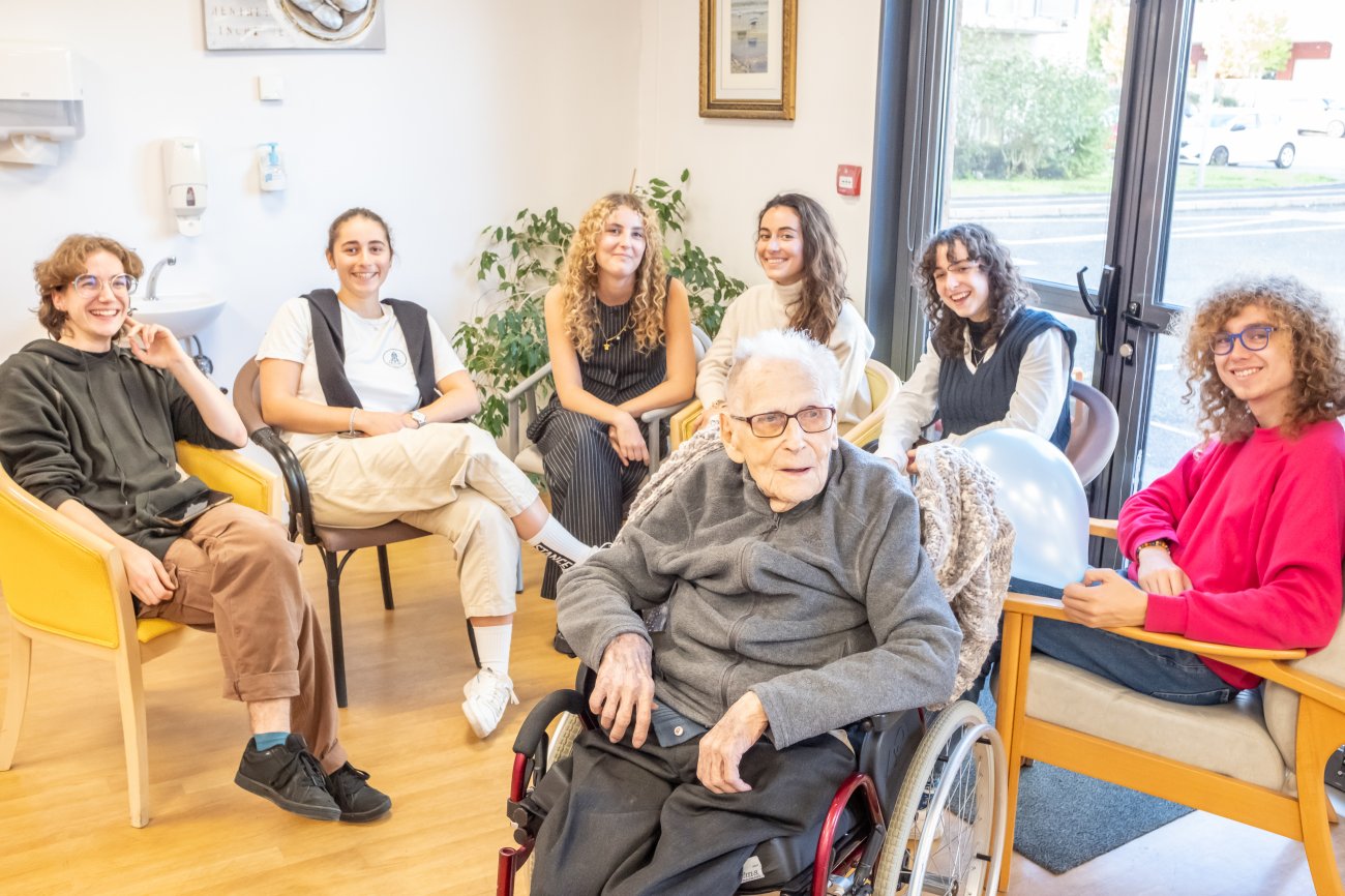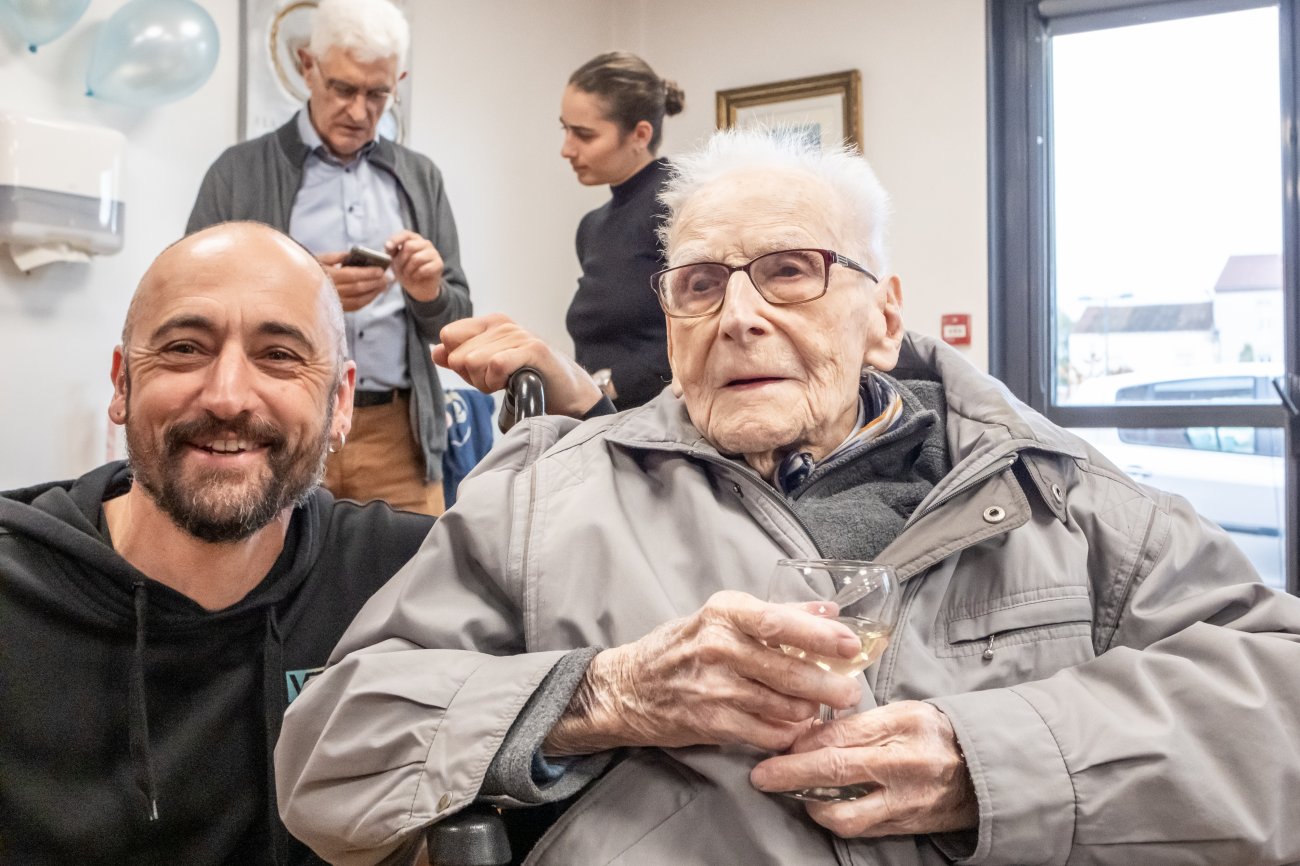On n'a pas tous les jours 100 ans... Alors évidemment, toute la famille de Camille Dufour a voulu fêter son centenaire et tout le monde s'est retrouvé à l'EHPAD Saint-Henri. Les enfants : Geneviève, Gabriel, avec une pensée pour Christian... Les petits-enfants : Grégoire, Pierre, Amélie, Boris, avec une pensée pour Anne... Les arrière-petits-enfants : Mathilde, Justine, Léa, Julien, Marie Alice, Manon, Juliette, Camille, et son arrière arrière petite fille : Ksénia.