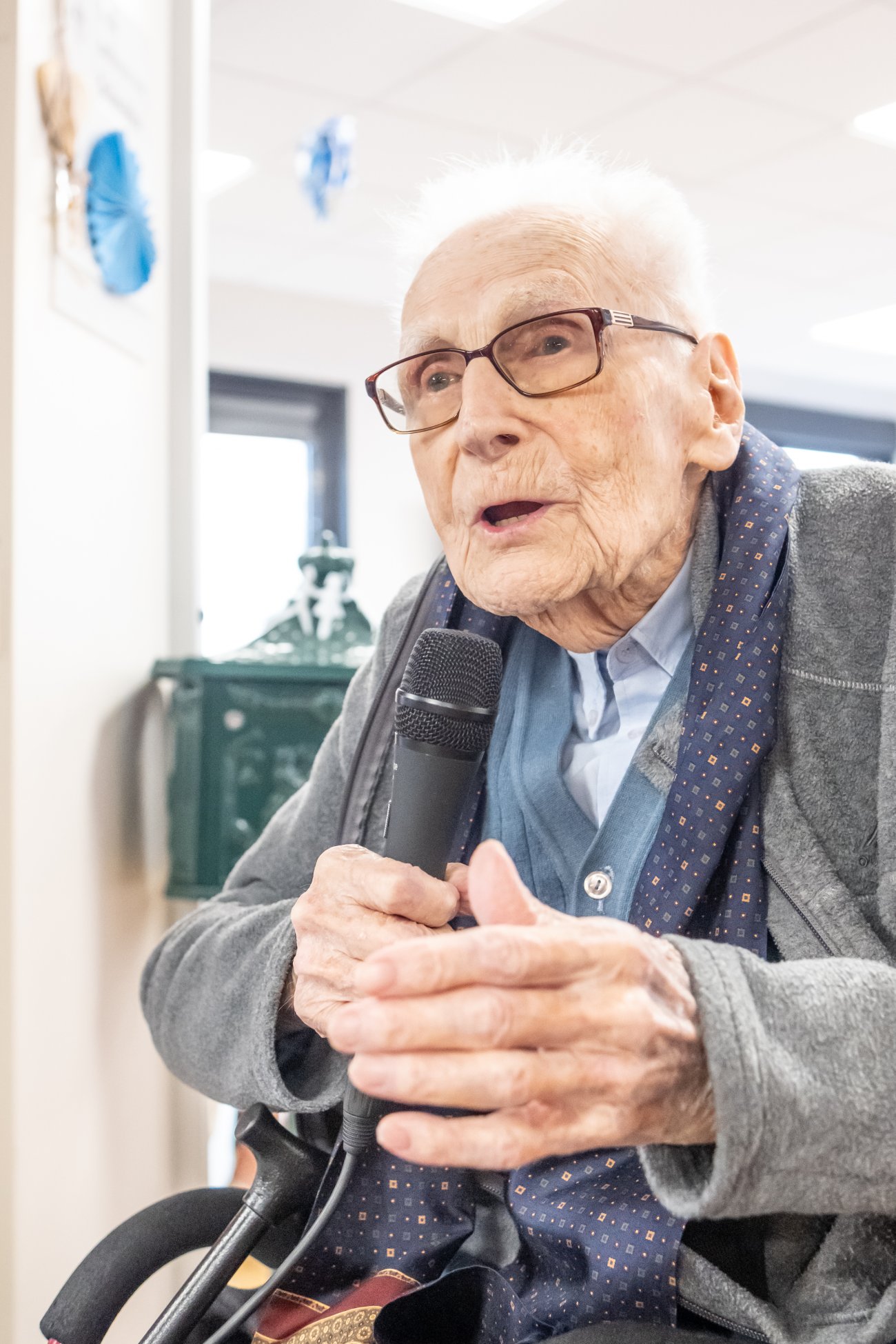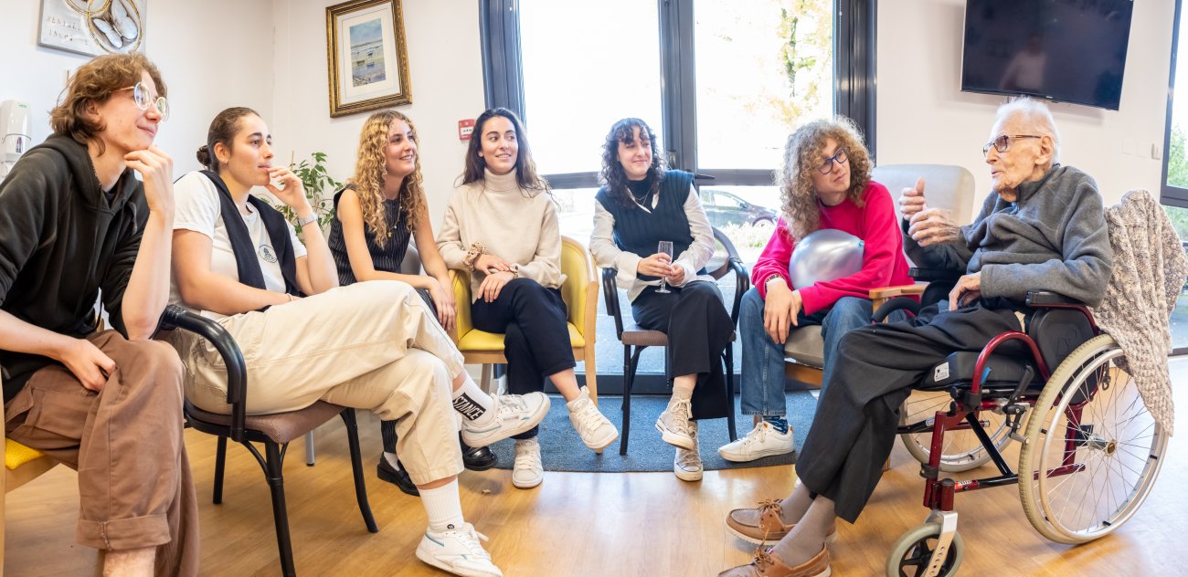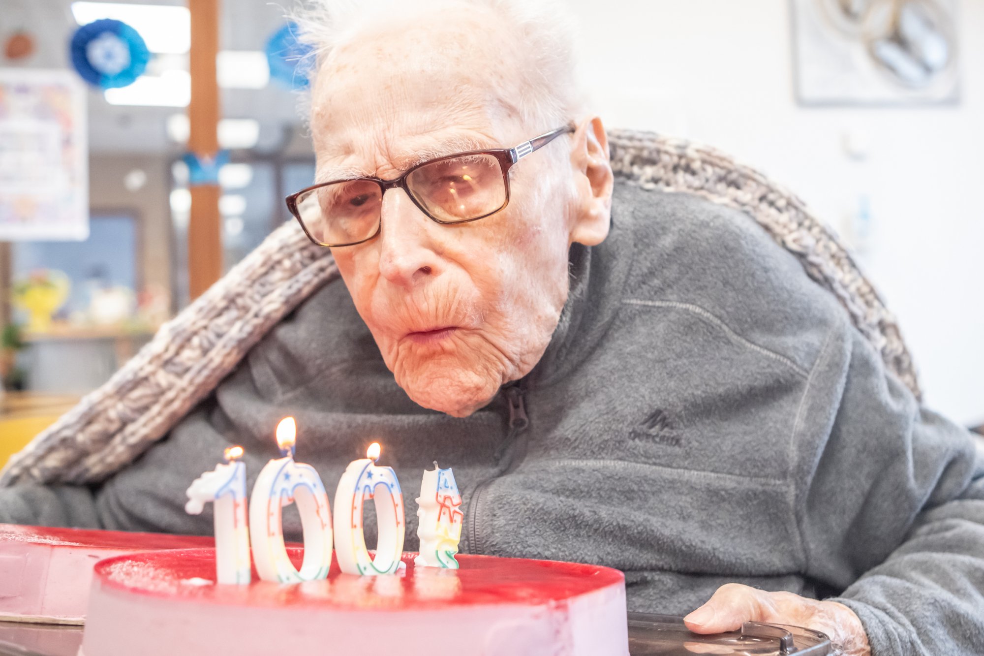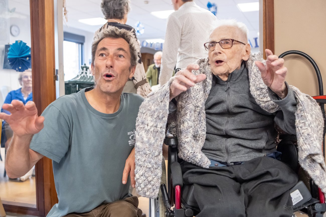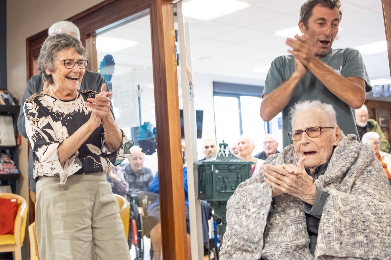 On n'a pas tous les jours 100 ans... Alors évidemment, toute la famille de Camille Dufour a voulu fêter son centenaire et tout le monde s'est retrouvé à l'EHPAD Saint-Henri. Les enfants : Geneviève, Gabriel, avec une pensée pour Christian... Les petits-enfants : Grégoire, Pierre, Amélie, Boris, avec une pensée pour Anne... Les arrière-petits-enfants : Mathilde, Justine, Léa, Julien, Marie Alice, Manon, Juliette, Camille, et son arrière arrière petite fille : Ksénia.