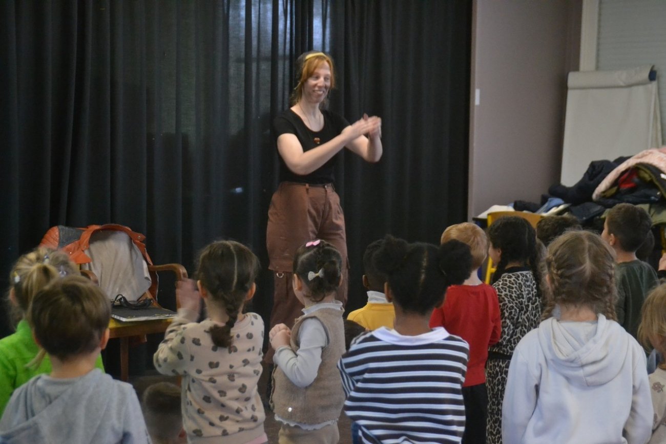 Jeudi matin, le groupe des 4-6 ans du centre de loisirs a accueilli Delphine Santelli pour une heure de contes africains et plus précisément de Tanzanie. Cette Creusotine d’adoption a plusieurs cordes à son arc. Comédienne, créatrice et très habile de ses mains, elle confectionne elle-même ses costumes, accessoires, marionnettes et ses décors pour façonner ses spectacles.