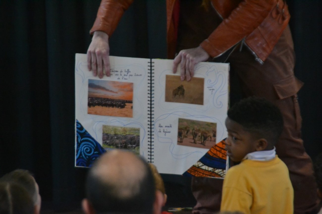 Ce jeudi matin, à la demande de l’équipe d’animation, elle a offert des contes africains et plus précisément tanzaniens à la cinquantaine d’enfants tout ouïe. Des contes avec des personnages hauts en couleurs et les animaux sauvages des immenses parcs naturels de ce grand pays d’Afrique orientale : lions, éléphants, léopards, hyènes… des espèces à protéger du braconnage qui vise principalement les éléphants.