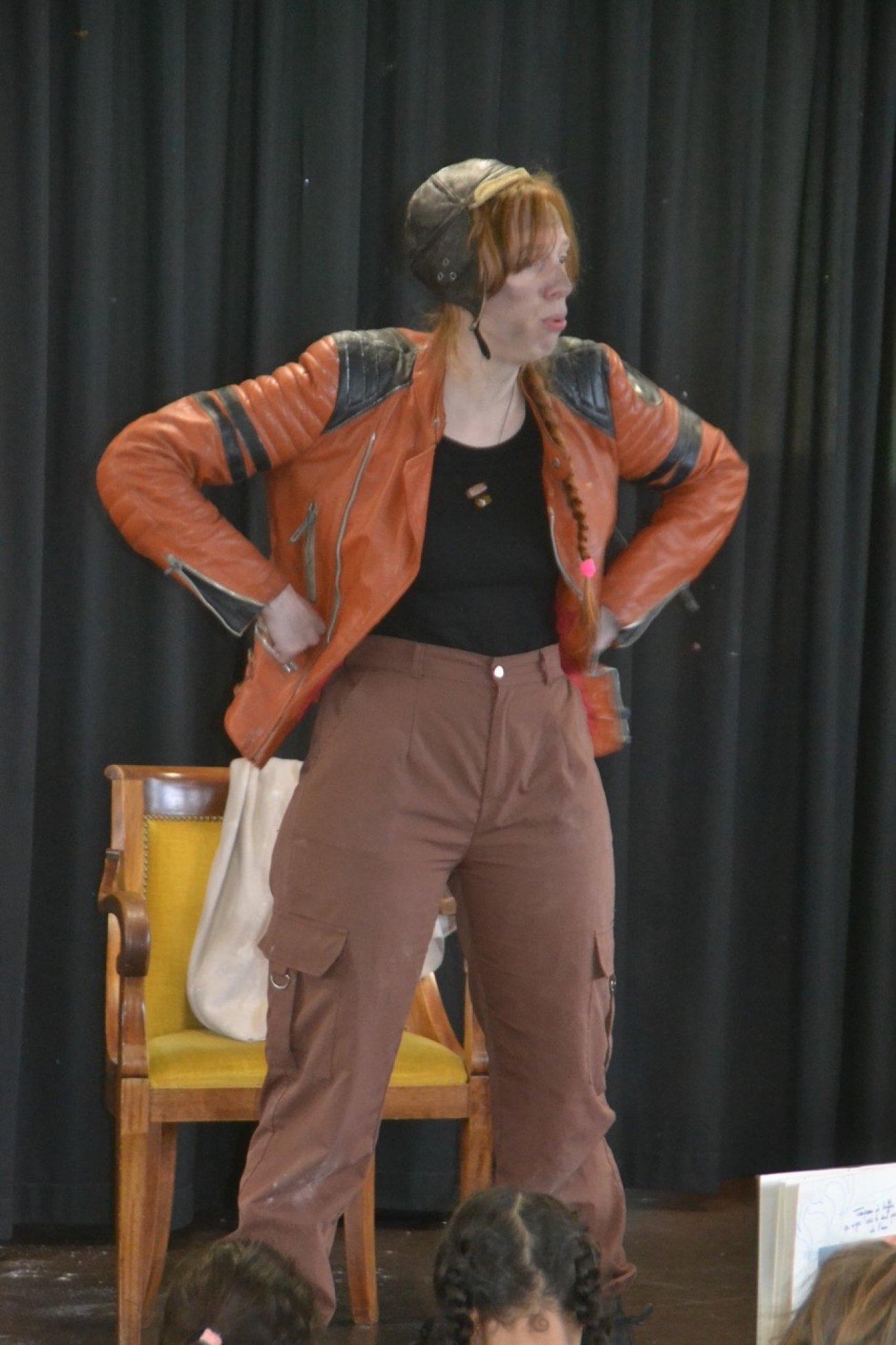 Comédienne, créatrice et très habile de ses mains, elle confectionne elle-même ses costumes, accessoires, marionnettes et ses décors pour façonner ses spectacles.