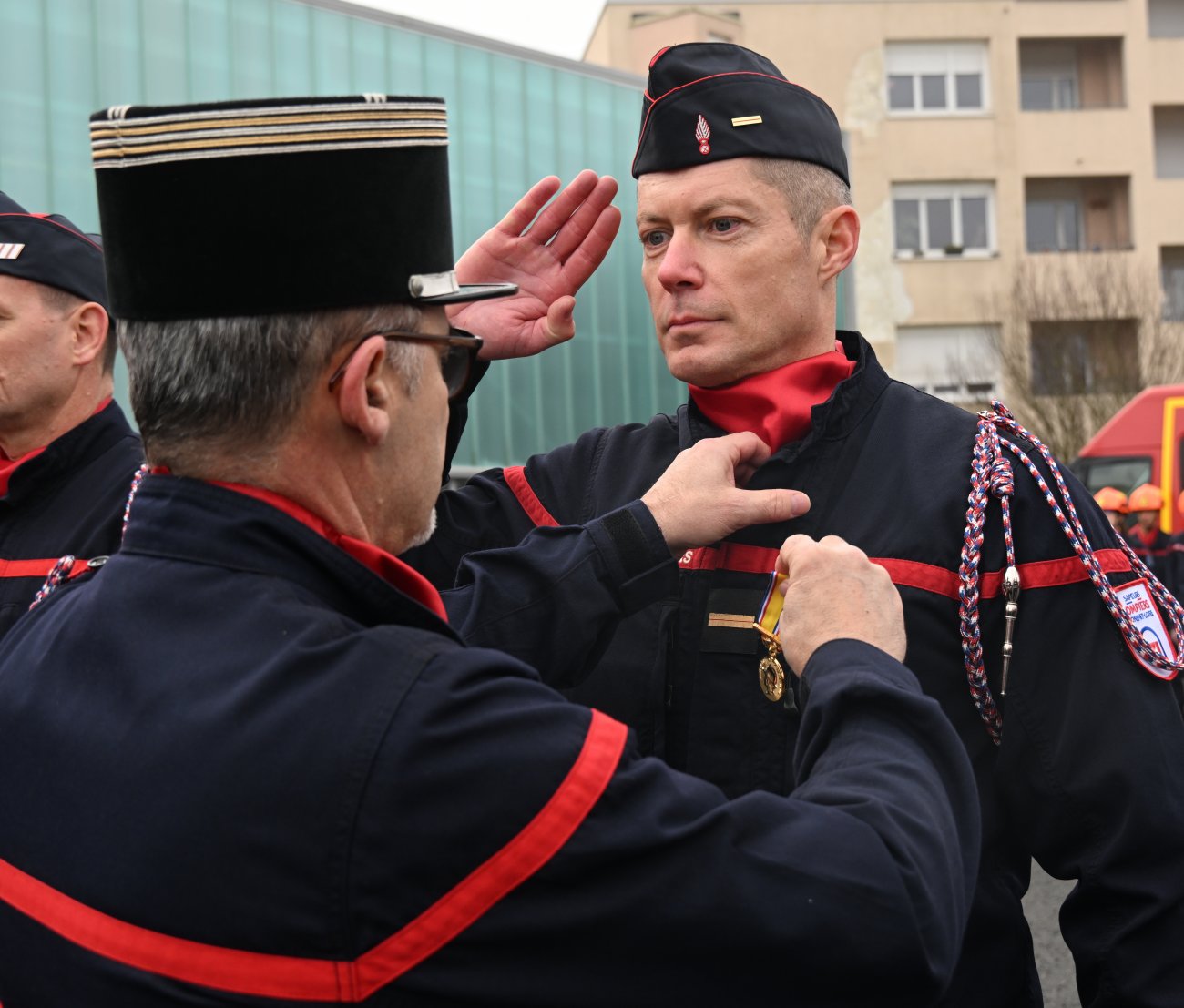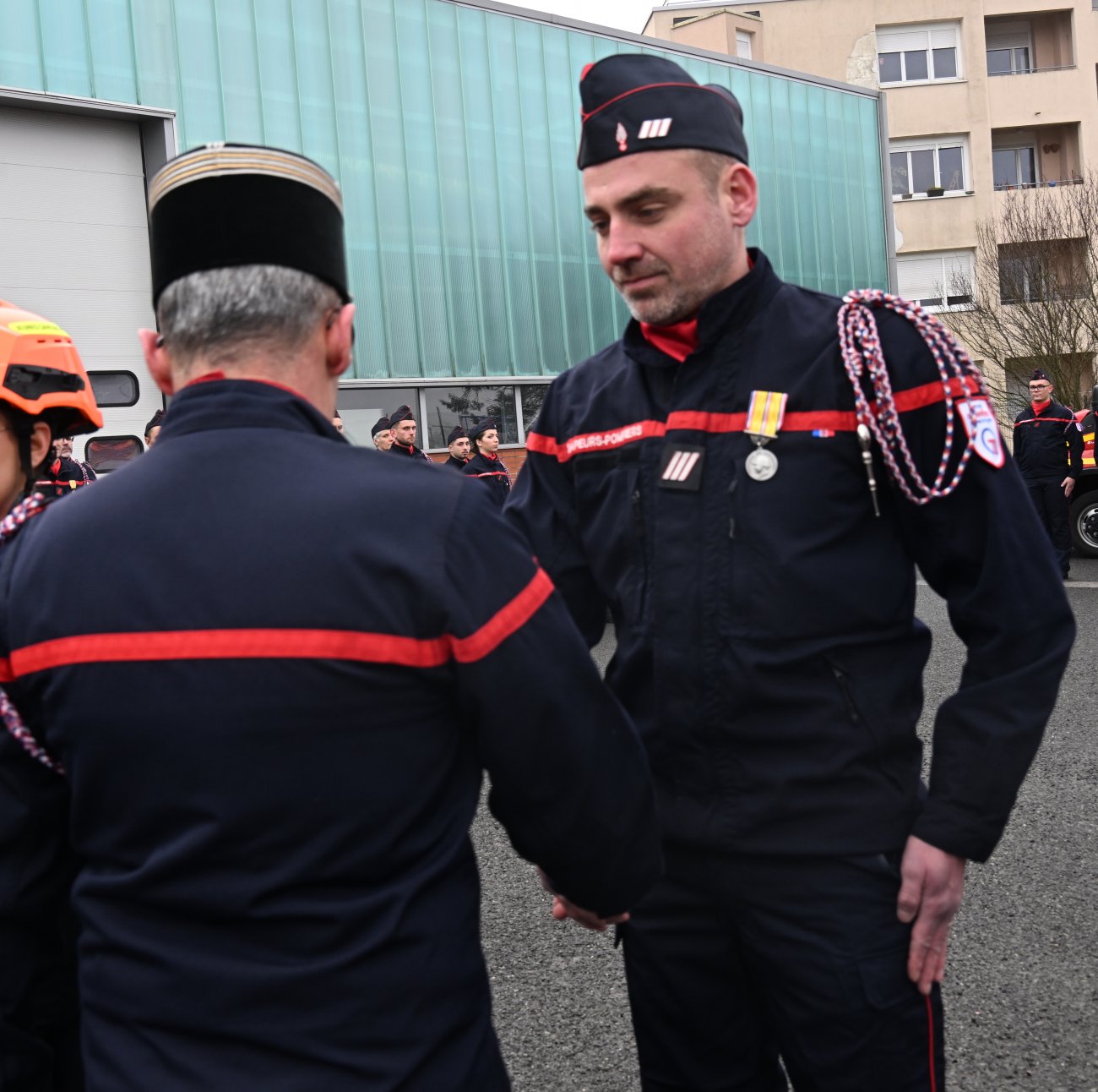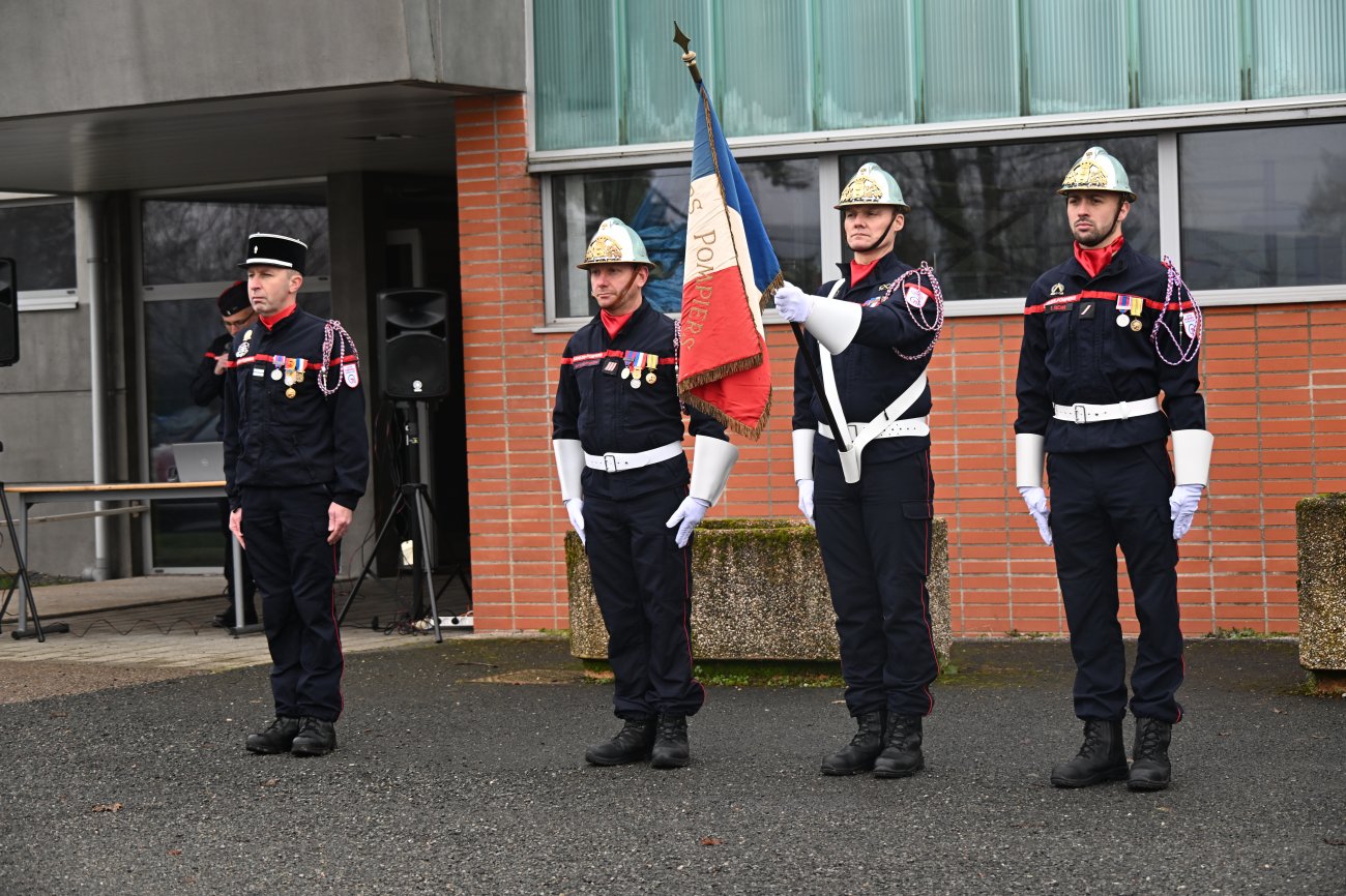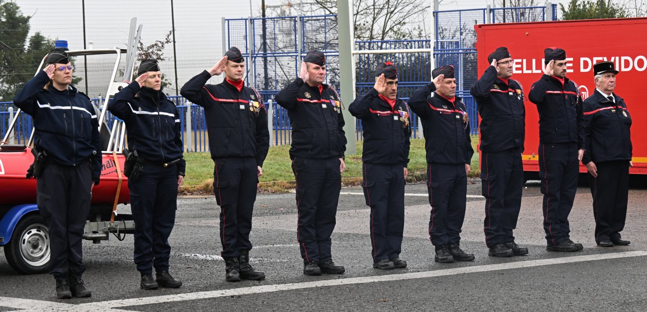 La cérémonie a été l’occasion de remettre des médailles de Grand Or au Commandant Sébastien Deroche et au Lieutenant Bruno Dutremble pour 40 ans de service, d’Or au Lieutenant Nicolas Lorde, à l’Adjudant Fabien Cikacz et au Sergent Chef Emmanuel Chavet pour 30 ans de service, et d’Argent au Sergent-Chef Nicolas Chavance pour 20 ans de service.