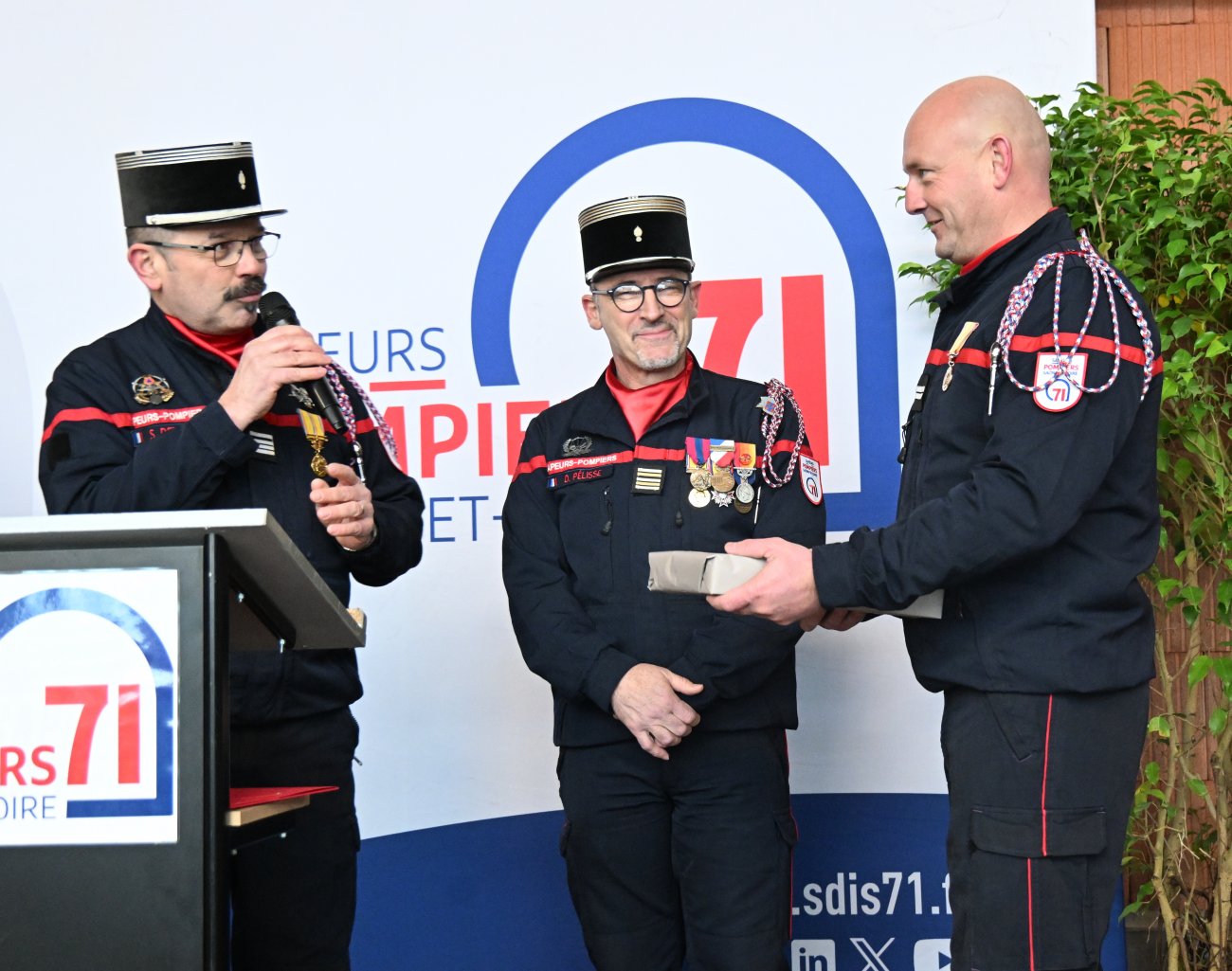 Le Commandant Sébastien Deroche avait à ses côtés le Colonel Didier Pélisse qui représentait le directeur du SDIS et le Lieutenant Franck Viala, qui représentait l’union départementale.