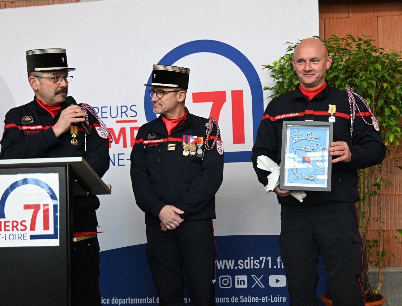 «Il faut rappeler que les pompiers interviennent 24 heures sur 24, toute l’année. Il n’y a pas beaucoup qui offrent un tel service. Aujourd’hui, nous devons faire face aux violences et aux incivilités. Comme les policiers et comme les gendarmes. C’est une triste réalité. Cela a été vécu récemment par six pompiers à Saint-Germain du Bois. Nous devons être un et indivisible face à cela. Cela concerne 1,2% de l’ensemble des interventions. Je tiens à saluer les 500 conventions signées avec des entreprises et collectivités. C’est vital pour l’opérationnel, mais aussi pour les formations».