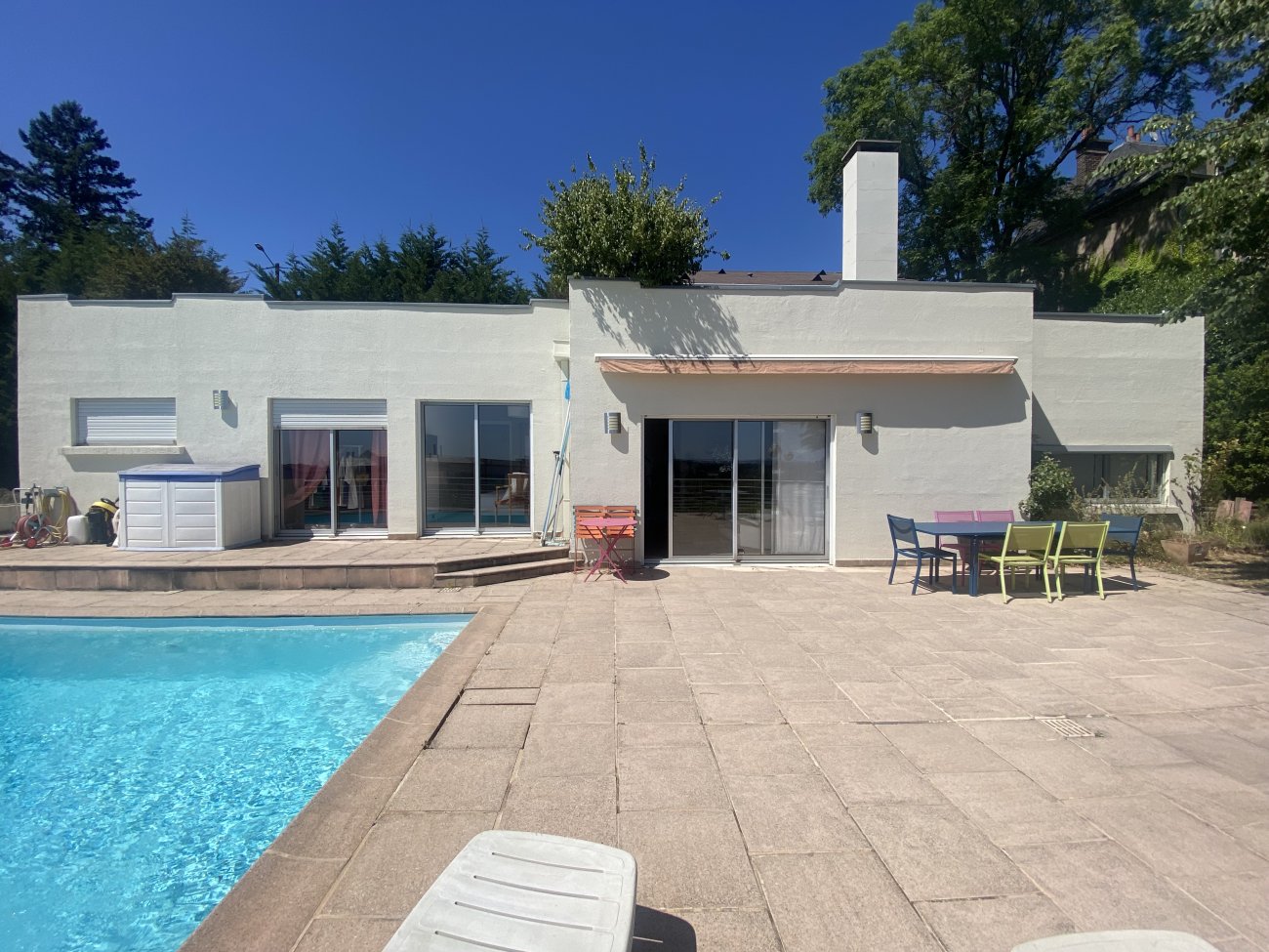 Belle villa d'architecte située proche du Coeur de Ville, offrant de très beaux volumes, une très jolie vue et comprenant en rez de jardin de plain-pied, hall d'entrée, coin toilettes avec lave mains et penderie, dégagement, belle cuisine récente donnant sur terrasse ombragée et ouverte sur vaste séjour/salon avec cheminée centrale et baies vitrées coulissantes en accès direct sur terrasse et piscine, dégagement, trois chambres dont une en accès terrasse/piscine, dressing, salle d'eau. Etage accessible par bel escalier en colimaçon desservant, un bureau et deux chambres dont une climatisée et leur salle d'eau privative. Sous-sol d'une buanderie, chaufferie (chauffage par PAC AIR/EAU - ballon thermodynamique), cave climatisée, garage avec porte motorisée. Agréable terrain sans vis à vis avec piscine 9.5m x 4.5m. Classe énergie 180 kWhEP/m².an (D) – Classe climat 6 kg CO2/m².an (B) – Montant estimé des dépenses annuelles d’énergie pour un usage standard établi à partir des prix de l’année 2021-2022-2023 : 2320 € - 3190 €.
