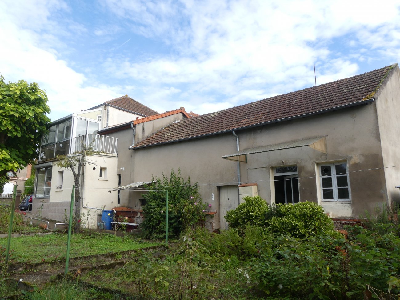 Sur les hauteurs du Creusot - MAISON avec très belle vue, mitoyenne d'un côté, idéale pour une première acquisition, comprenant en rez de jardin, entrée par véranda, cuisine, séjour avec cheminée, salle d'eau avec WC, buanderie, chaufferie et cave à la suite.