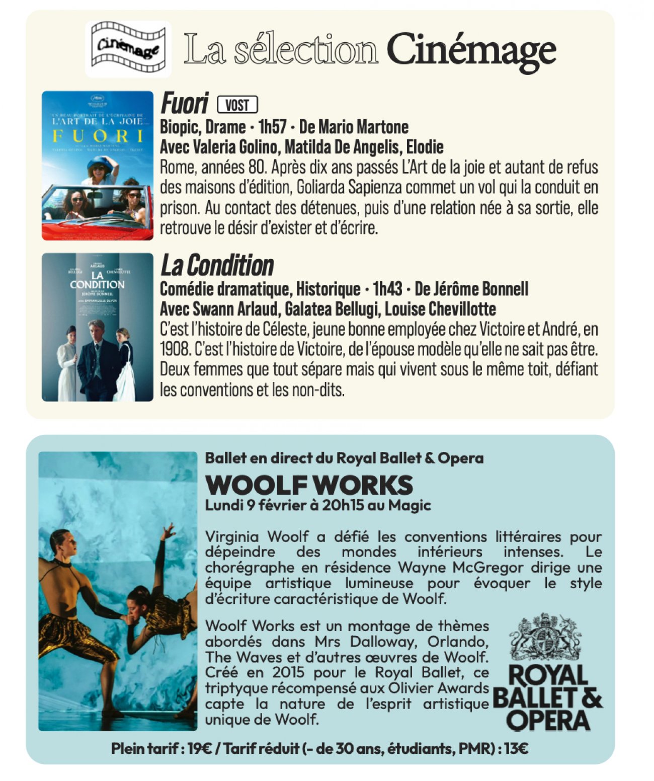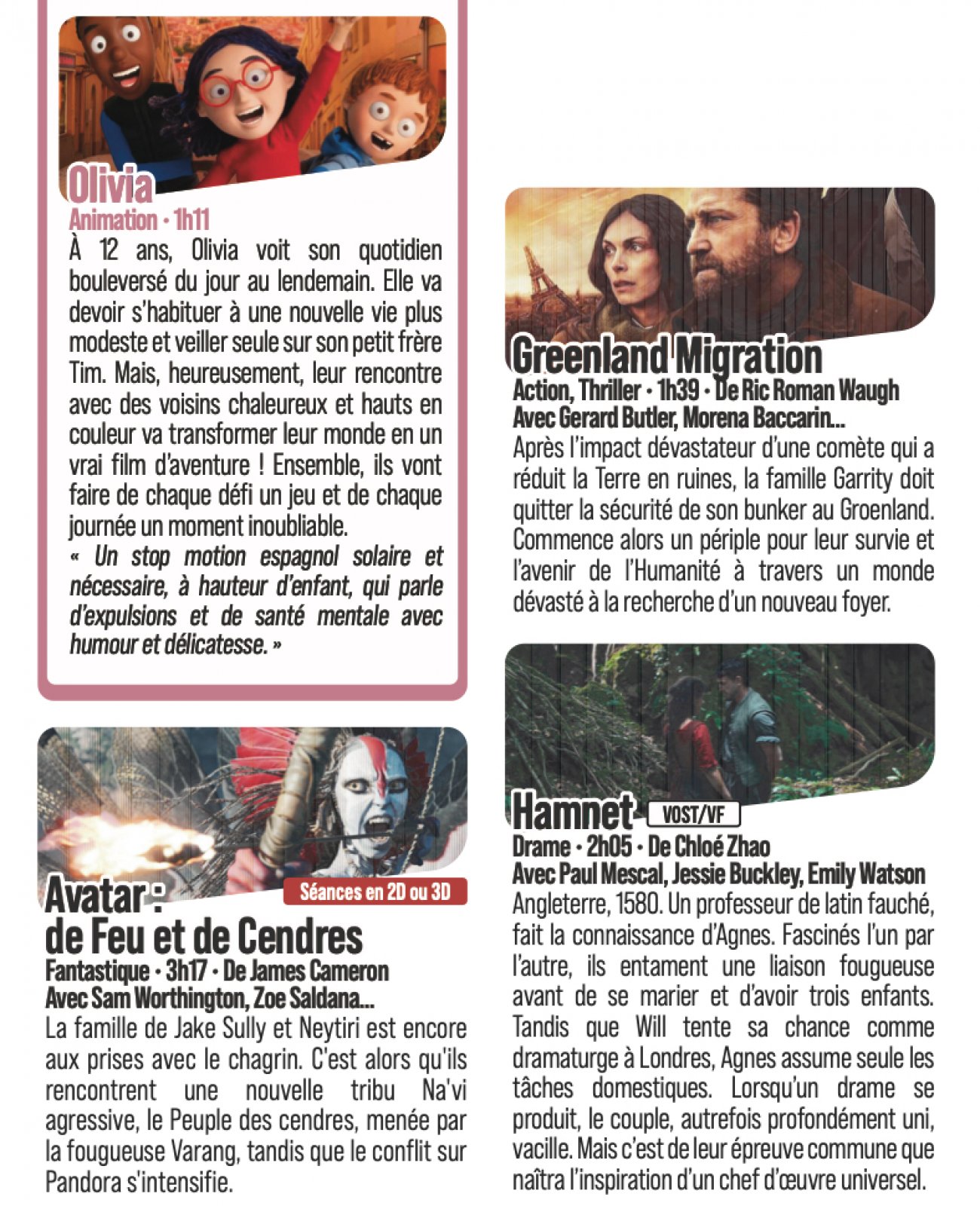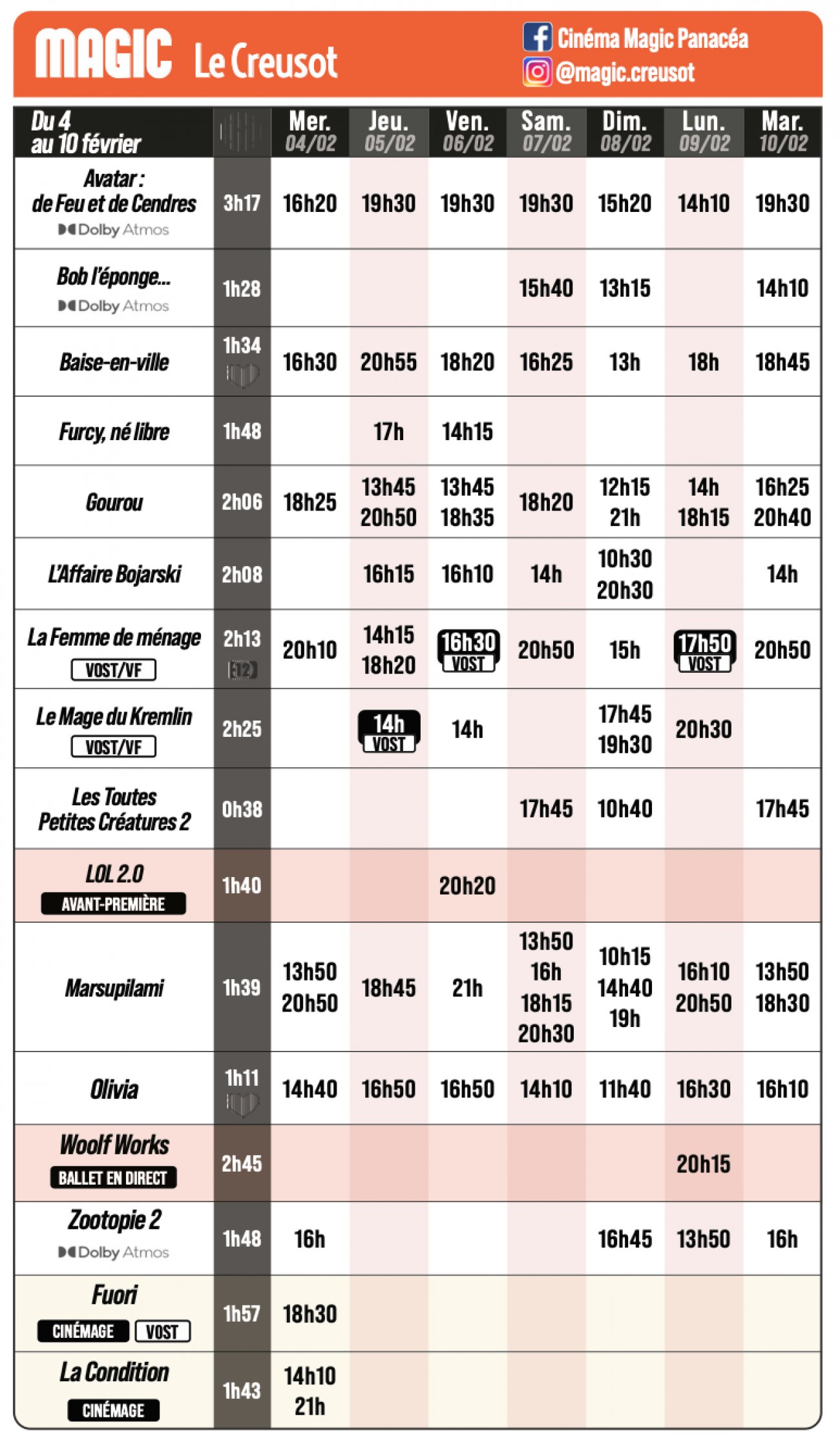 Au total, sur la semaine du mercredi 4 au mardi 10 février, ce sont 85 projections qui sont programmées. De quoi satisfaire toutes les envies à des horaires beaucoup moins conventionnels que par le passé.